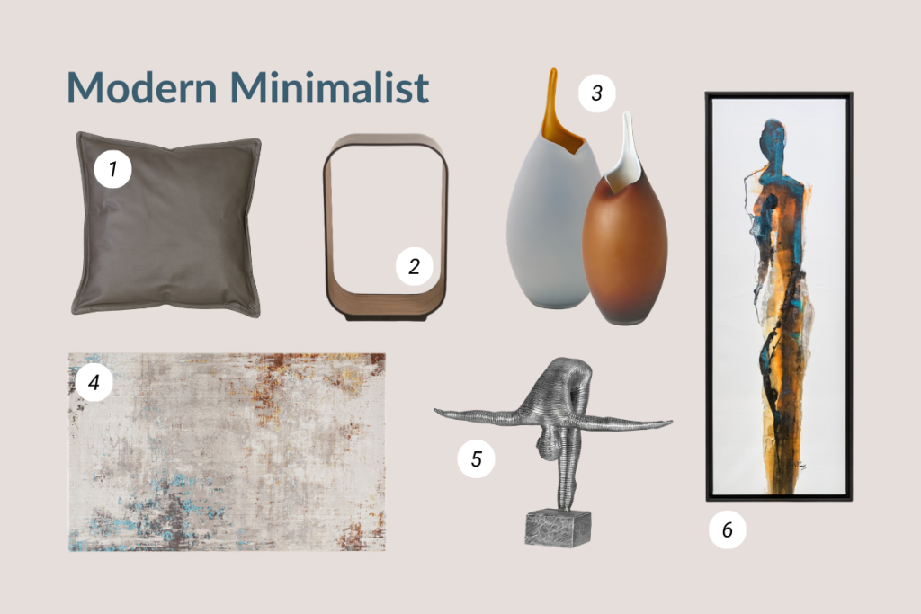 Emphasize that minimalist look by choosing accessories with clean lines, smooth finishes, or extra functionality, like a sculptural lamp with storage space or integrated charging ports. And don’t be afraid to add dimension with geometric patterns, abstract art pieces, or elegant statement pieces – as long as you approach this aesthetic with intention, your space will feel curated and sophisticated.