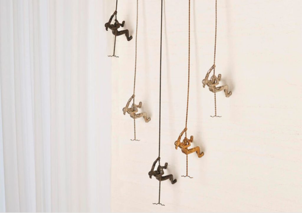 Combining urban and rustic elements with modern functionality, Industrial Edge is for those seeking a balanced blend of organic textures and sophisticated style. Raw, natural materials like metal, wood, and stone are essential for this aesthetic, bringing in a starker feel with all the benefits of contemporary design; think an eye-catching wall sculpture with a thick-hewn wood panel or a steel sculpture with a textured look but smooth feel.