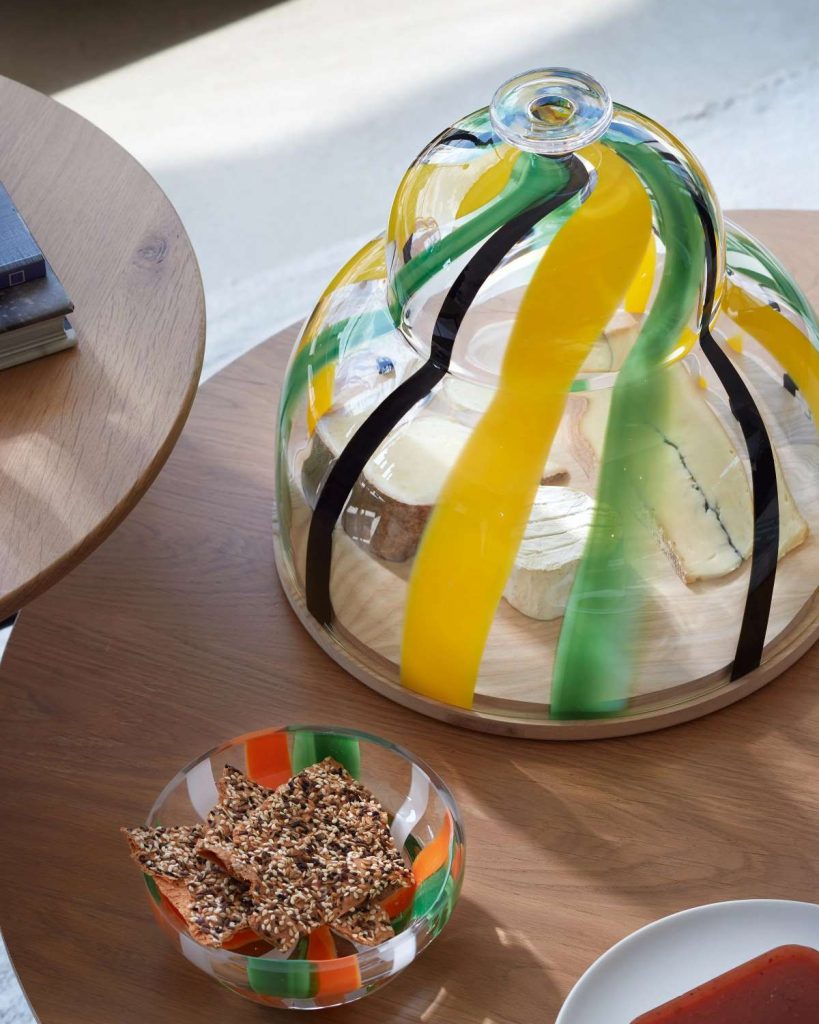 If you’re dining outdoors, there are a few other considerations you may want to take to mind. Food coverings, like the boldly striped Folk Dome, are handy for keeping out insects, dust, and stray leaves blown by the wind. For outdoor gatherings after dark, durable and easily mobile light sources like this solar-powered lamp or this LED lantern can keep the fun going. Water-resistant or outdoor-friendly items like the Swim Mini Sculpture or Beckham Lamp offer worry-free enjoyment, even next to a splashing pool.
