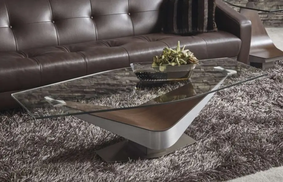 Though coffee tables are rarely made from all metal, metal frames and accents provide sturdiness and contribute to an overall industrial or sculptural look. They also offer longevity and are easy to clean. The Victor Coffee Table’s metal base forms a show-stopping triangular design that is hard to achieve with other materials.