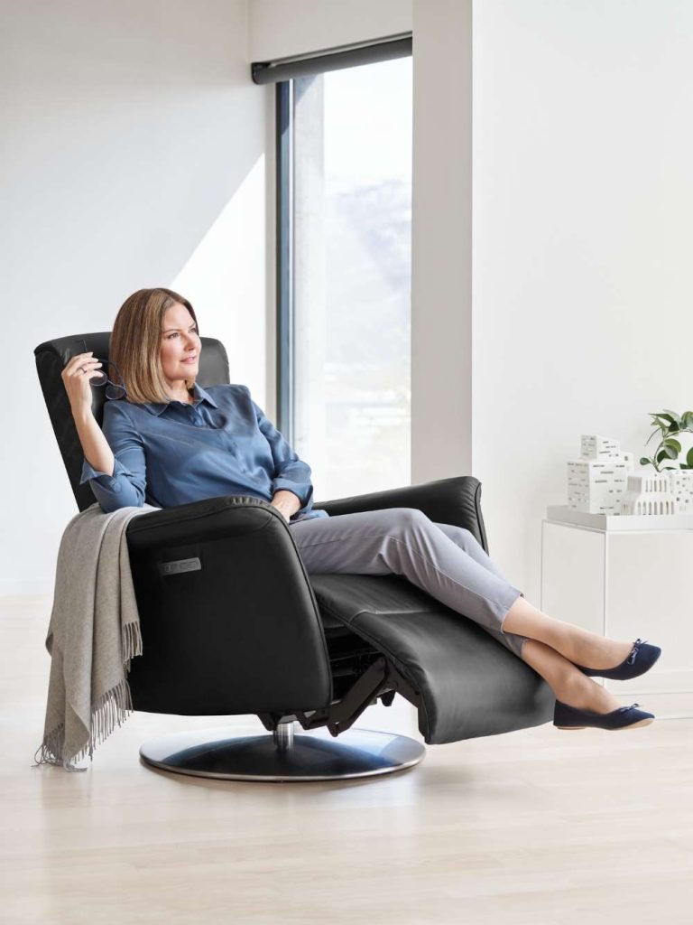“For a reader, the right seating that’s comfortable and supportive, paired with a side table, will make the perfect reading nook,” Pedersen states. To create one such space, we suggest bringing in a power motion recliner like the Stressless® Mike with a laptop or side table like Serif; the recliner’s footrest can be folded in when not in use, and the mobile table can be moved when needed. To really give this space that thoughtful feel, Pedersen also suggests adding “a few candles or tea lights, a soft throw, and a wooden tray or bowl.” These small touches can change the flow of a room and inspire new appreciation.