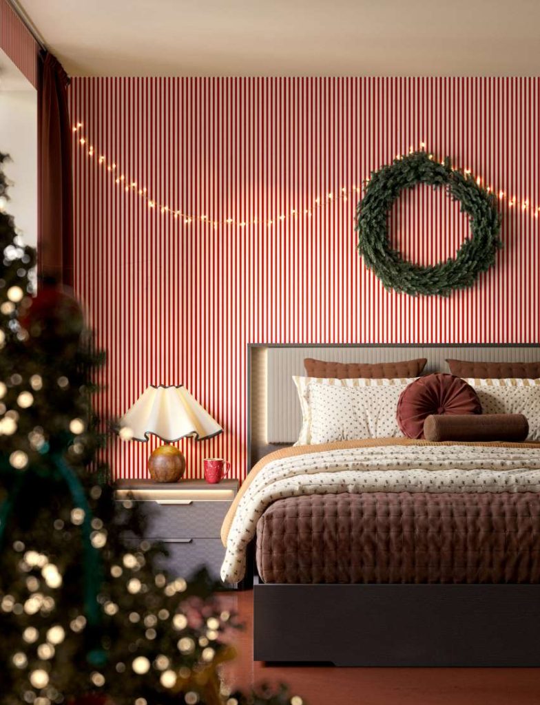The goal is to make spaces that feel like your, or your guests’, personal sanctuary, bringing a feel of calmness and harmony. To create a welcoming space for a video gamer or movie fanatic, Pedersen suggests adding a “fabric accent chair with a throw draped over one arm” in front of a TV. For those that love to sleep in, incorporating “dimmable light and plush rugs on either side of the bed” can create a wider relaxation zone, so their contentment doesn’t end when they sit up.