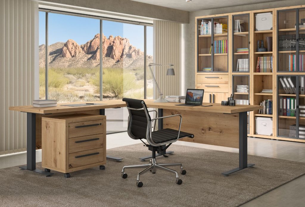Copenhagen has Essential items for the living room, bedroom, office, and dining room, and Hansen explains that “our buyers diversify the collection by ensuring that there is a wide variety of functions and styles represented.” For example, the living room features options like the Brendan Sectional, which boasts power motion seats, USB ports, and family-friendly protected leather, as well as modular systems that allow for customized seating arrangements. In the dining room, the extendable Tito Dining Table can effortlessly accommodate gatherings of any size with two self-storing leaves that simply slide out and up.