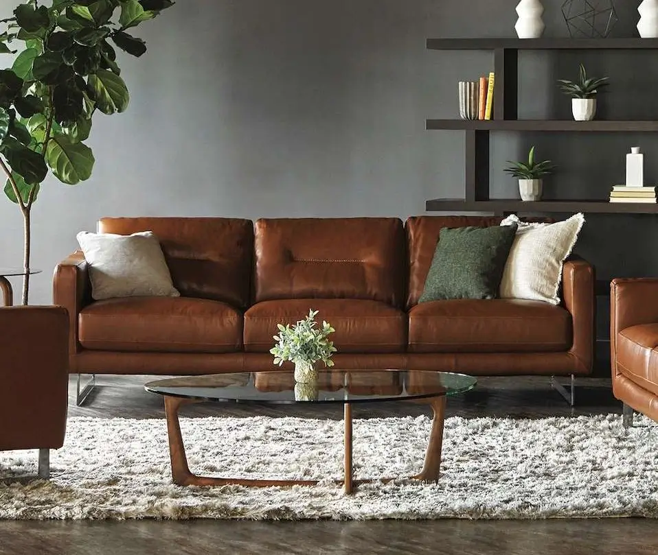 For a horse lover’s interior, Navarro recommends “starting with black or brown as the main color, then accentuating with complementary hues.” Brown is an especially versatile color that comes in a range of tints and shades, from the deep chocolate brown of the Rover Armchair to the warm cognac of the Jayden Sectional, to the light walnut of the Frank Desk.
