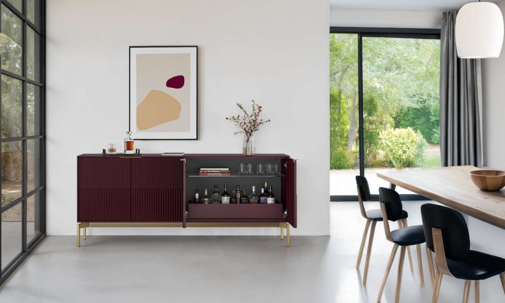 “For a bar corner, I’ve also seen clients use two or four lounge chairs or swivel chairs, paired with small, multifunctional tables,” Avella says. “The Aldo or Ludo chairs are a stylish choice, especially when accompanied by the Bink Tables. It’s a welcoming place to have a little conversation and relax before or after dinner.”