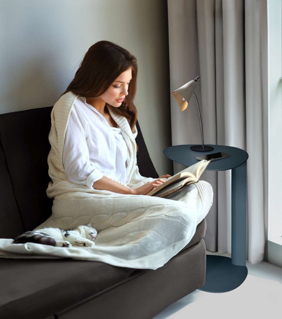 Whatever your guests’ activities are, they’re sure to long for a restful respite, both at the end of the day and in between activities. Lay the foundation for a relaxing stay with key furnishings that are designed with universal comfort in mind. A high-quality bed frame and mattress or sleeper sofa can make all the difference to someone’s sleep quality – allowing them to rest easily each night and feel refreshed each morning. Consider an upholstered frame in a deep, moody color for a cocooned feel or a warm wood piece that exudes classic comfort. A mid-century modern design like Prescott offers the best of both worlds, with a solid walnut veneer and grey fabric headboard. “If space is tight, try a smaller-scale bedroom set like Bravo,” Erickson suggests, which is available in a variety of frame sizes. “Even if you can’t fit the matching nightstands, it’s nice to have somewhere for your guests to set down a glass of water or other items. Both the Scoop accent table by Elite Modern and the BDI Bink table are good, smaller alternatives.”