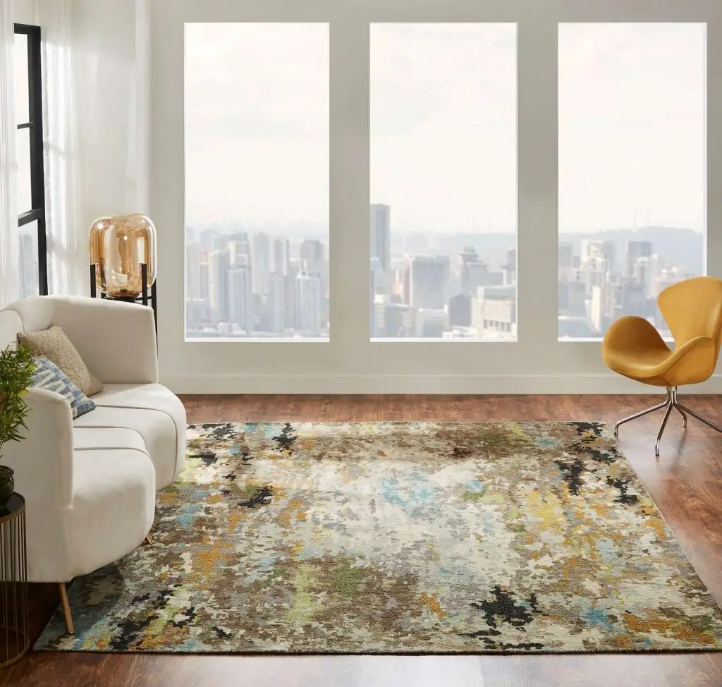 Synthetic fibers like polyester, polypropylene, or nylon are also a popular choice for rugs. Versatile and durable, rugs made of these materials tend to be easier to clean and more resistant to fading. Made by Citak of Canada, the Artisan Phase Rug is woven from polypropylene with a neutral color scheme that makes it suitable for a range of interiors.