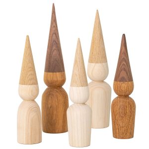 Handmade in Denmark from repurposed wood, the Caroline and Christian Elves are here to liven up your home for the holidays. Each elf has a clean, simplified form with a body made of walnut and a cap of dark oak.