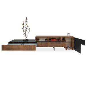 A modern TV stand is more than just a piece of furniture—it serves as the centerpiece of your living room, reflecting your style and taste. Our media consoles, offered in sleek black and white finishes and a selection of wood finishes, are designed to seamlessly blend with any decor, enhancing the overall aesthetic of your space.