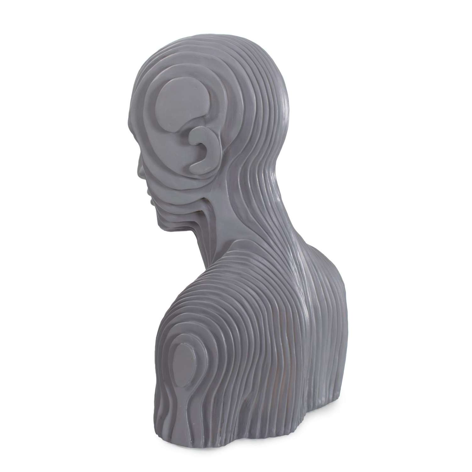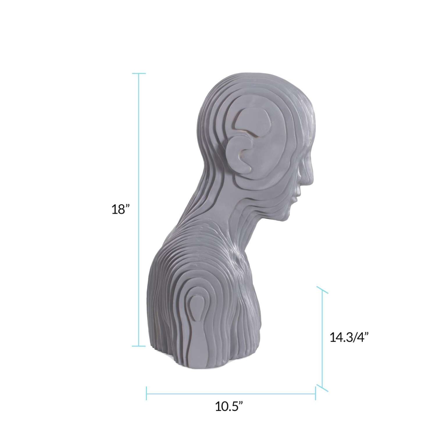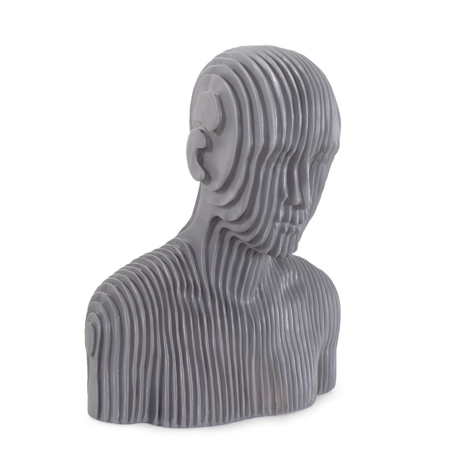 Abstract View of the Human Body is a contemporary sculpture composed of layered, vertical segments that form the head and upper torso of a human figure. Made of polyresin with a charcoal grey finish, this simple yet striking sculpture makes an ideal home accent for enthusiasts of modern art.