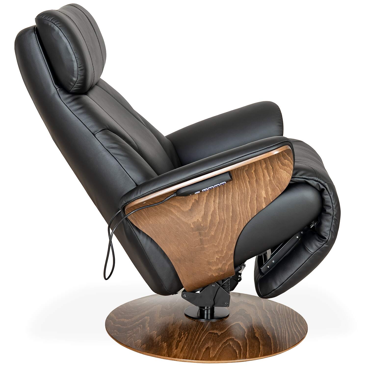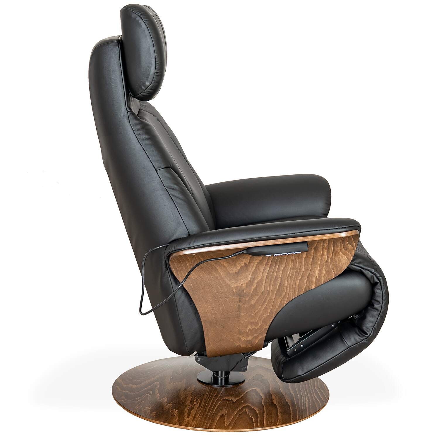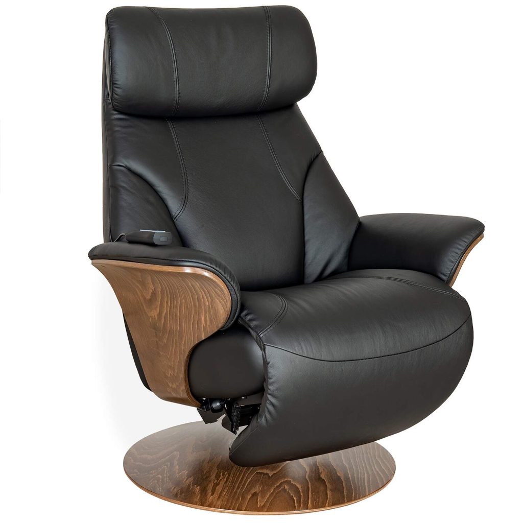 [0] => adam power motion recliner w/ adjustable headrest, 06 walnut base/side panel/9419 paloma black leather