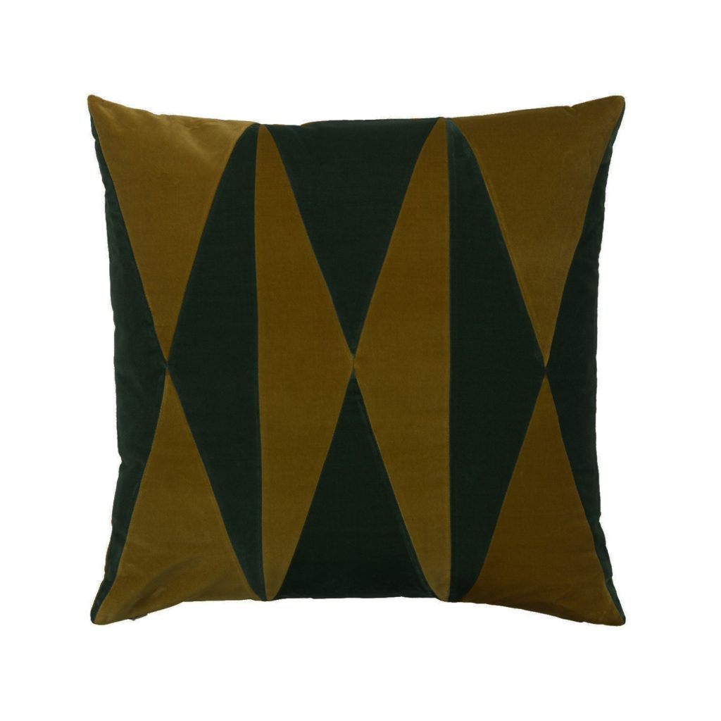 The Anneli Pillow was designed by Danish artist Christina Lundsteen and features a diamond pattern in dark peacock green and rich carmel brown. Hand made in Denmark, this pillow is made from 100% cotton velvet and has an anti-bacterial down filling. Anneli's cheerful geometric design will brighten up any room.