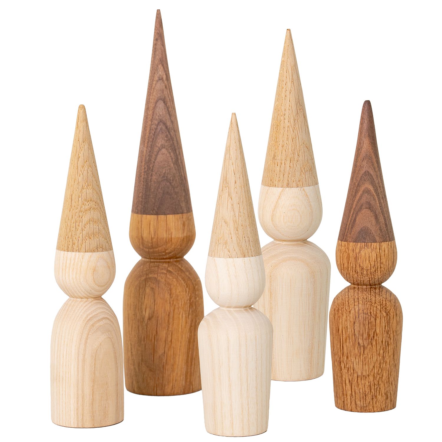 Handmade in Denmark from repurposed wood, the Astrid and Aske Elves are here to liven up your home for the holidays. Each elf has a clean, simplified form with a body made of light oak and a cap of maple. Display this set of 2 elves with their "parent" elves Fridia and Frederik, or mix and match with elves in other finishes for a cheerful display.