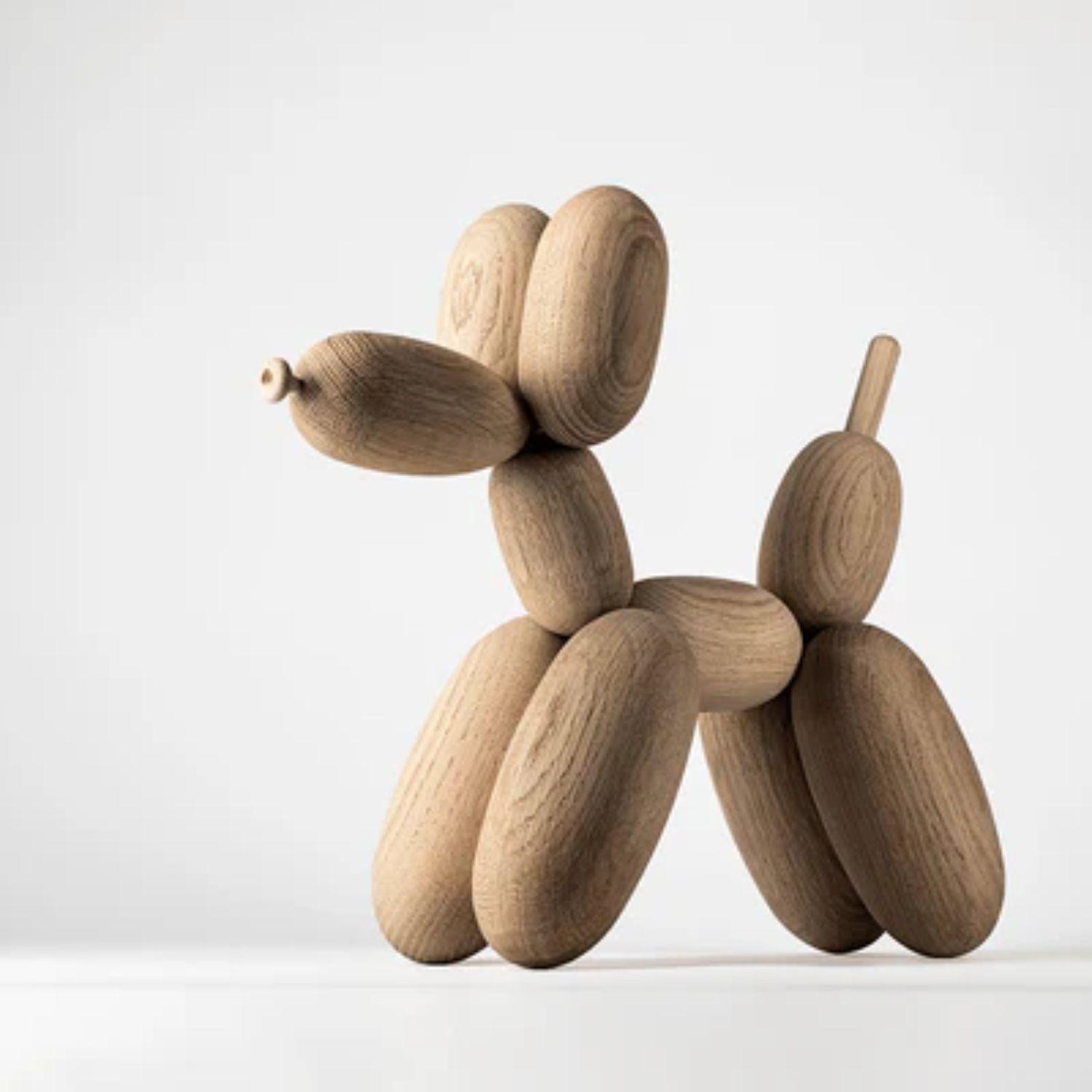 Evoking Jeff Koons' much beloved Balloon Dog, Balloon D'og inspires joy and presence. Each piece is hand-crafted from natural solid white oak, and there may be slight variations to the surface. Perfect for the young at heart, Balloon D'og adds a sense of levity and whimsy to any sideboard or shelf. Please note: Solid wood should not be exposed to direct heat or sunlight as this will discolor and dry out the wood; the product must be kept away from wood-burning stoves, radiators, etc.