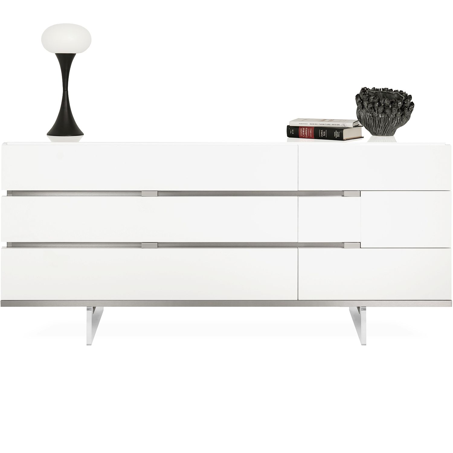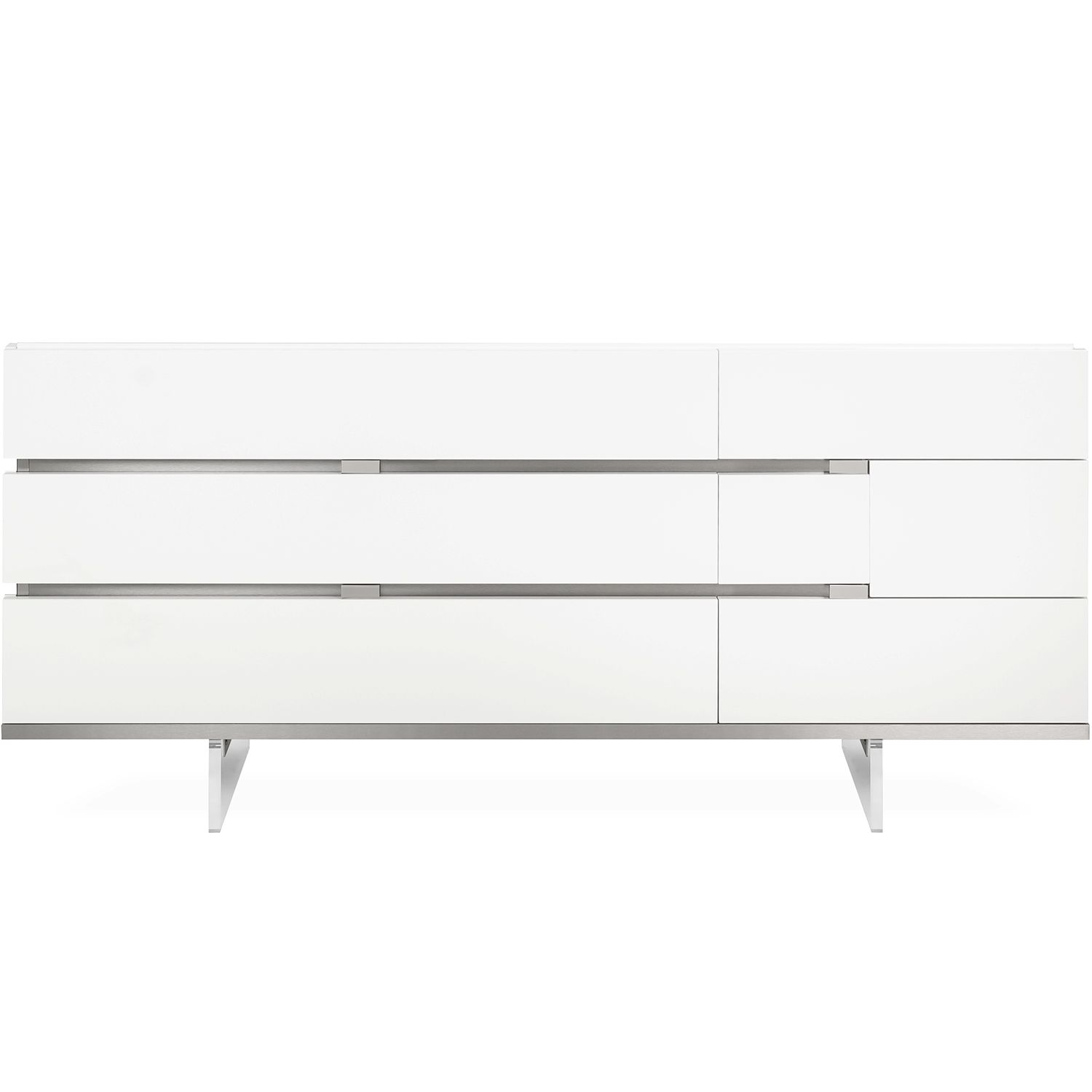 The Bella Vita dresser, made in Italy, captures the eye with its crisp geometric lines and high gloss white finish. Bella Vita brings bright, clean, and refreshing design to your bedroom space and is at once contemporary and timeless. This dresser has six spacious drawers and attractive metal accents.