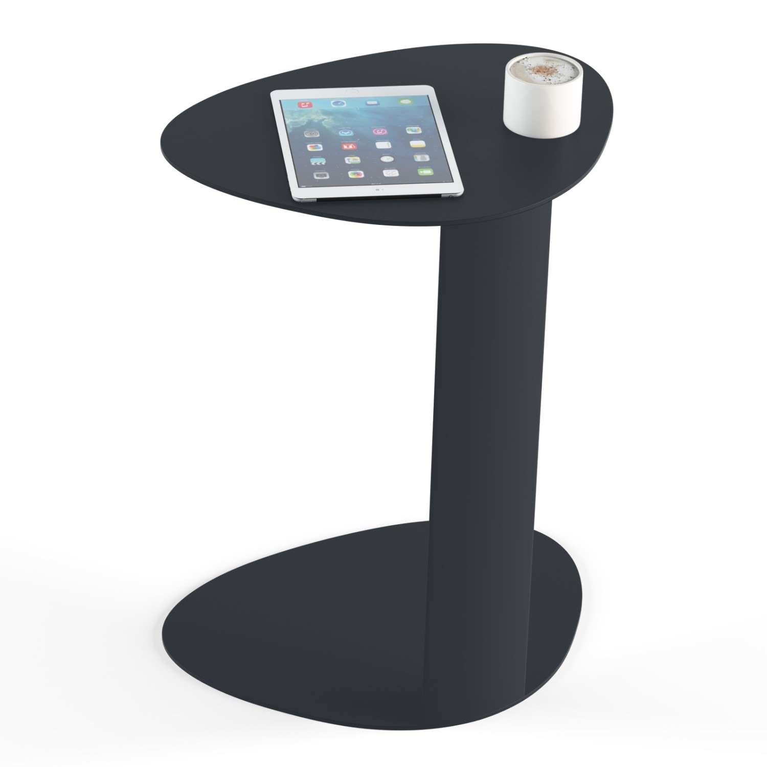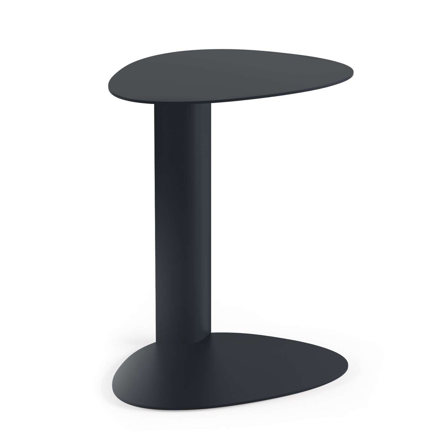 A convenient mobile media table, BINK is the perfect companion anywhere you work or relax. Whether on the computer at the sofa, lounging poolside or simply snacking in front of the TV, this convenient table goes anywhere you want. With a soft, contoured shape, BINK creates a comfortable workspace for a laptop or tablet or is an attractive resting spot for your favorite libation. Constructed of aluminum and steel, BINK is perfectly at home inside or out. Shown in pepper black.
