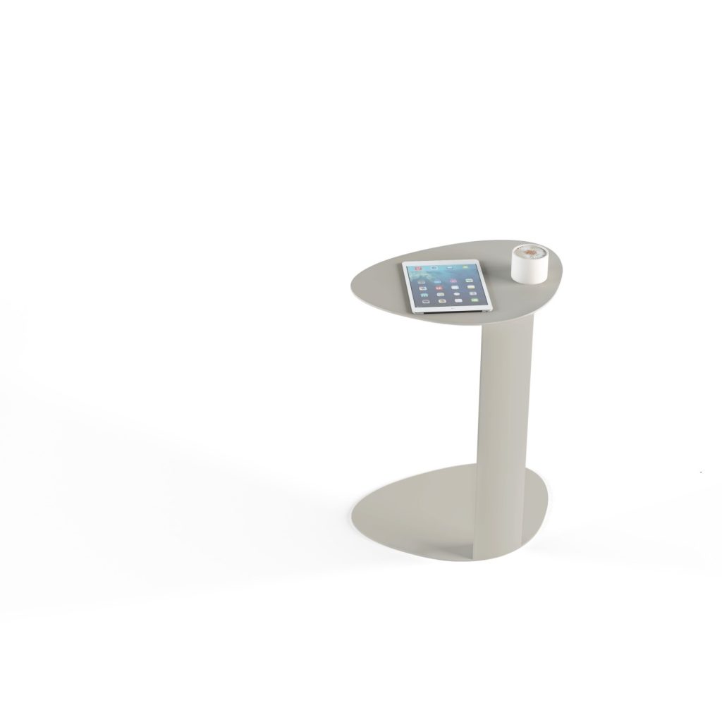 A convenient mobile media table, BINK is the perfect companion anywhere you work or relax. Whether on the computer at the sofa, lounging poolside or simply snacking in front of the TV, this convenient table goes anywhere you want. With a soft, contoured shape, BINK creates a comfortable workspace for a laptop or tablet or is an attractive resting spot for your favorite libation. Constructed of aluminum and steel, BINK is perfectly at home inside or out. Shown in stone.