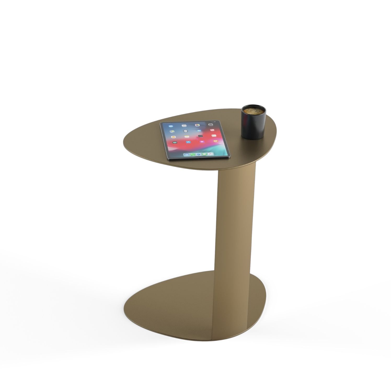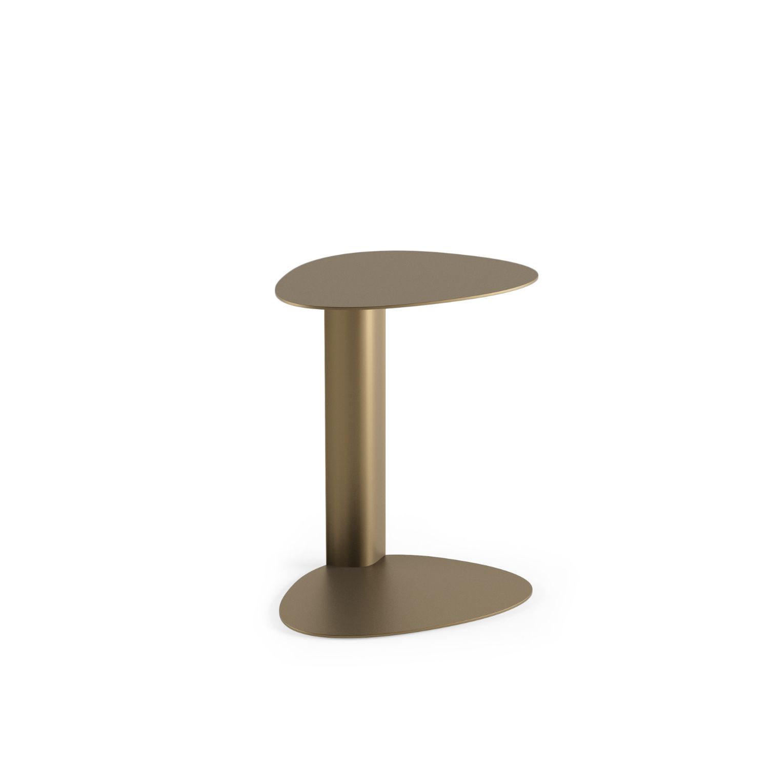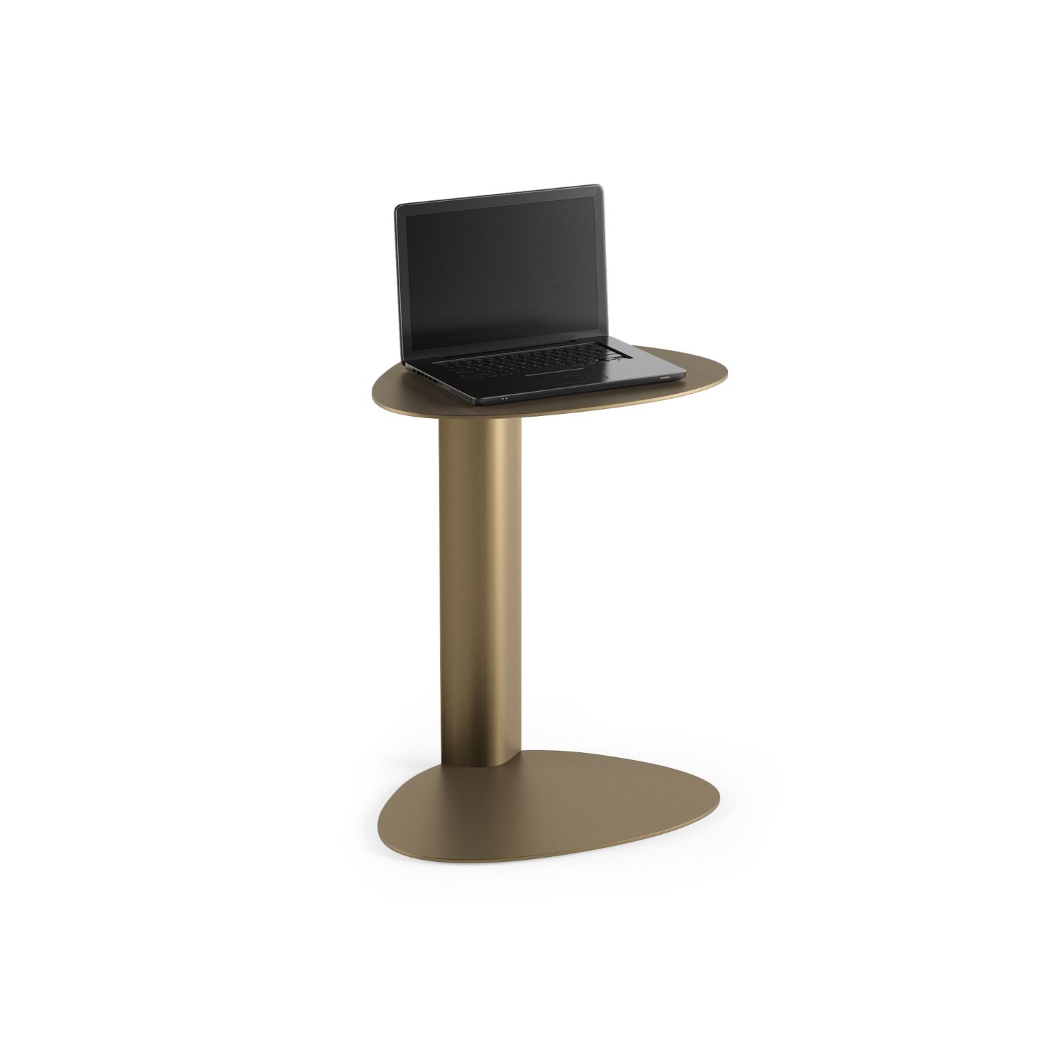 A convenient mobile media table, BINK is the perfect companion anywhere you work or relax. Whether on the computer at the sofa, lounging poolside or simply snacking in front of the TV, this convenient table goes anywhere you want. With a soft, contoured shape, BINK creates a comfortable workspace for a laptop or tablet or is an attractive resting spot for your favorite libation. Constructed of aluminum and steel, BINK is perfectly at home inside or out. Shown in bronze.