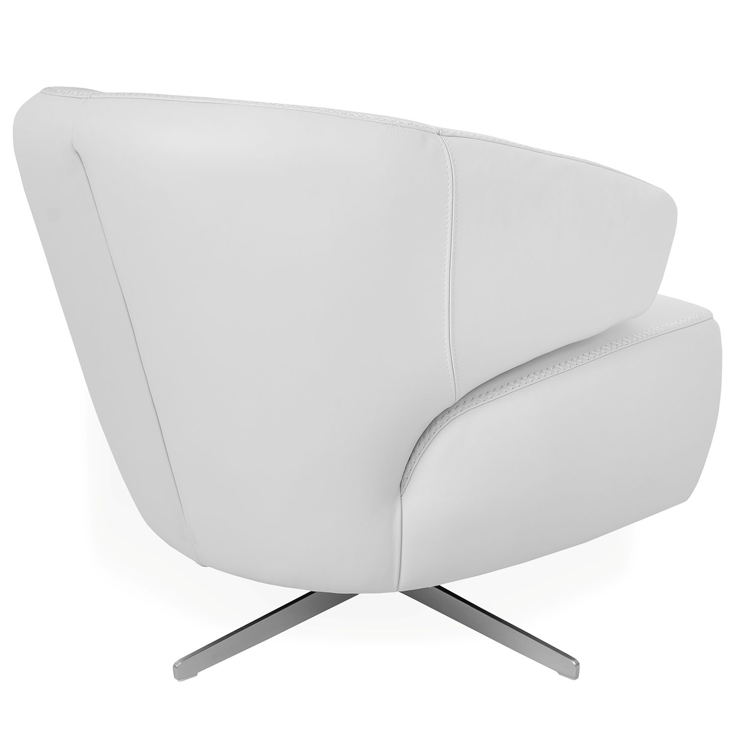 Ease into comfort with the Bryson Swivel Chair. Shown in frost leather with a sculpted seat back, diamond accent stitching, and matching lumbar pillow, Bryson provides both support and style. The brushed stainless steel swivel base adds a contemporary touch to any living room, reading nook, or home office. A part of our CORE collection, Bryson blends sophisticated design with everyday comfort.