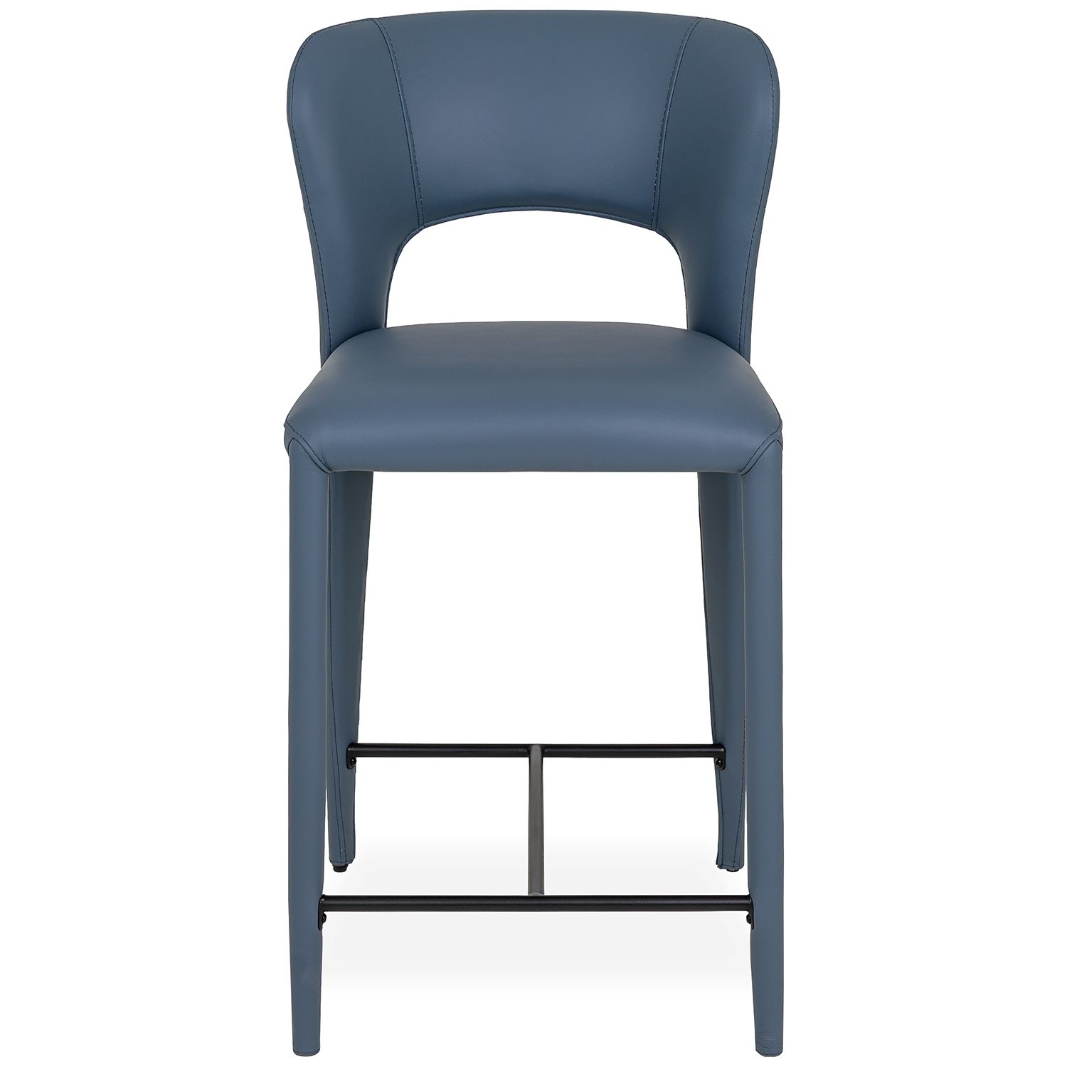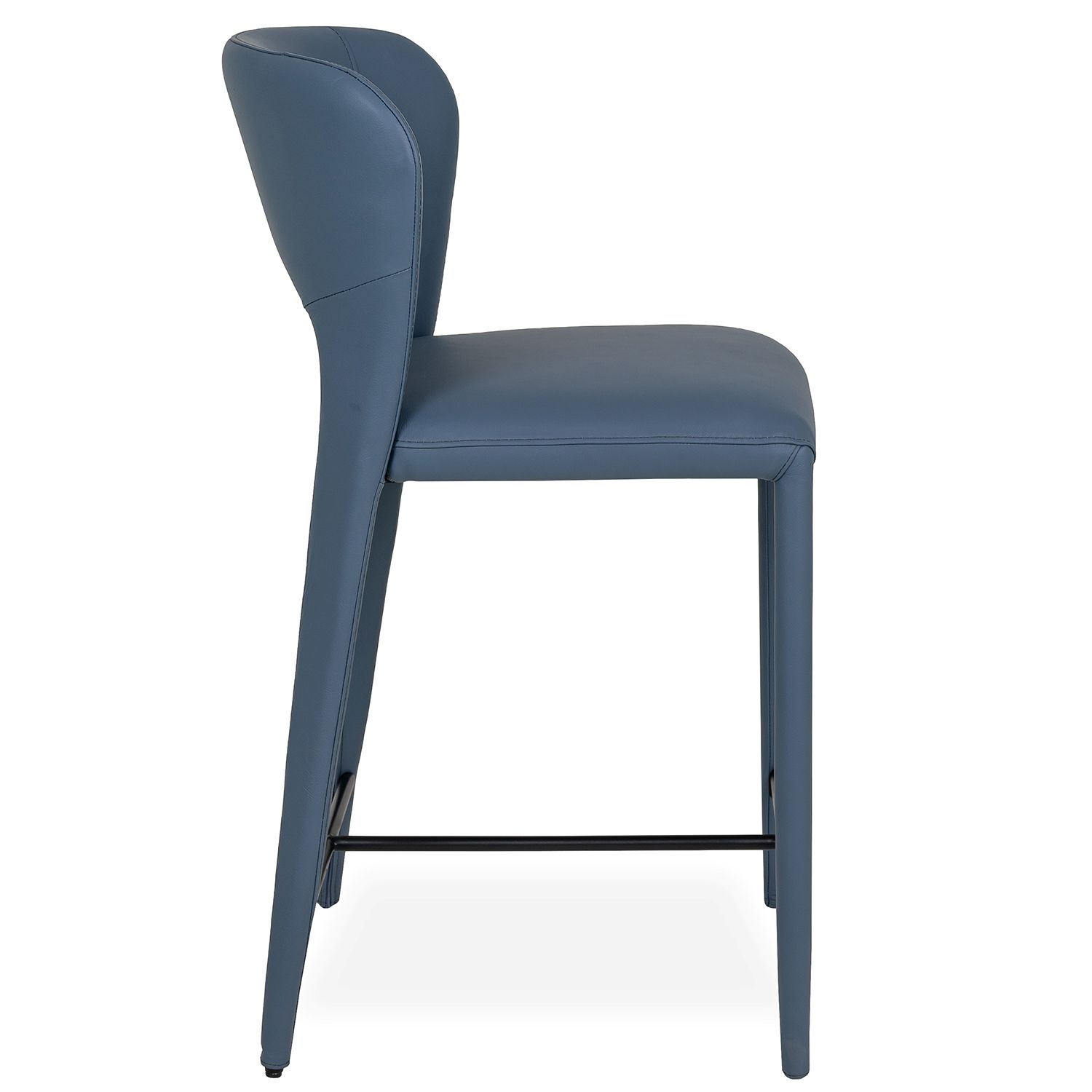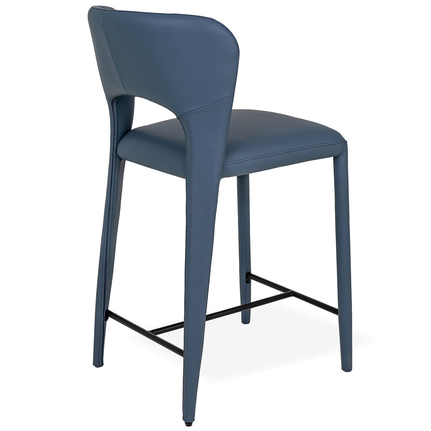 Bring artful elegance to your dining space with the Celine Counter Stool. Featuring a winged backrest that cradles your body as you sit, Celine is clad in blue leather with fully upholstered legs for a soft and luxurious look. The backrest smoothly transitions into the back legs, creating a unified, sculptural shape that is further enhanced by tailored seams and a striking cutout that plays with negative space. Refined and modern, Celine turns any meal into a fine dining experience.