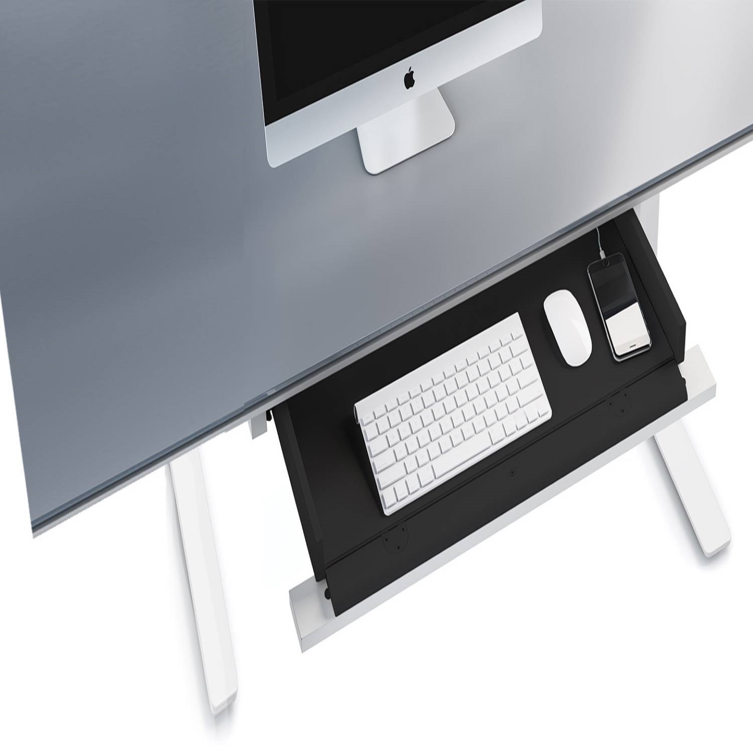 The Centro Lift Keyboard Storage Drawer is compatible with the Centro Small Lift Desk and the Centro Large Lift Desk. The multifunction flip-down drawer provides the perfect home for a keyboard, mouse, and other rechargeable items, and tucks away neatly when not in use. The non-slip, mouse-friendly material also ensures the drawer's contents are kept securely in place.