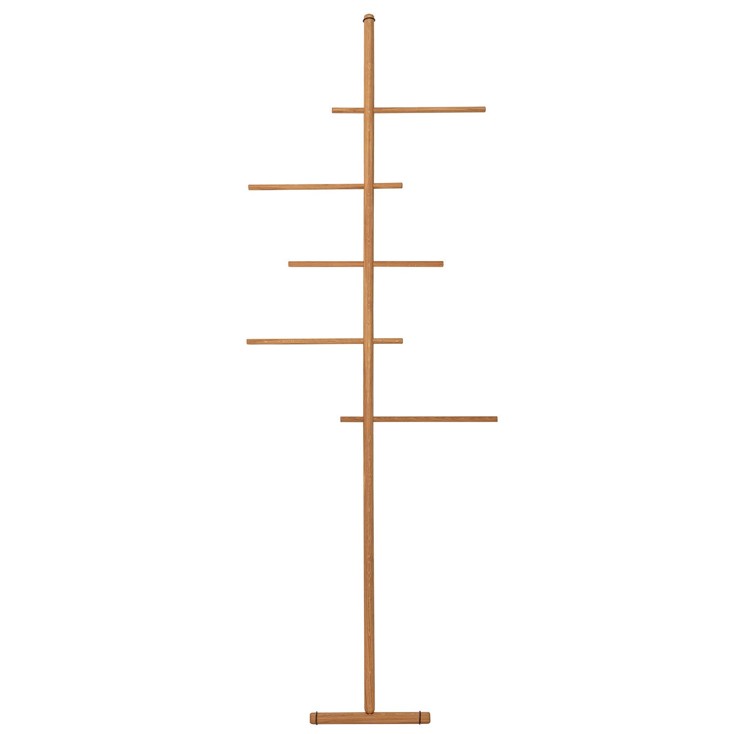 Handmade in Denmark from repurposed wood, the oiled oak Coat Stand brings functional simplicity to your daily routine. This coatrack's slim design features five staggered horizontal arms ideal for hanging jackets, shirts, hats, scarves, purses, and other accessories. Built to lean against a wall, this coat stand is a great organizational aid for small spaces and minimalist interiors.