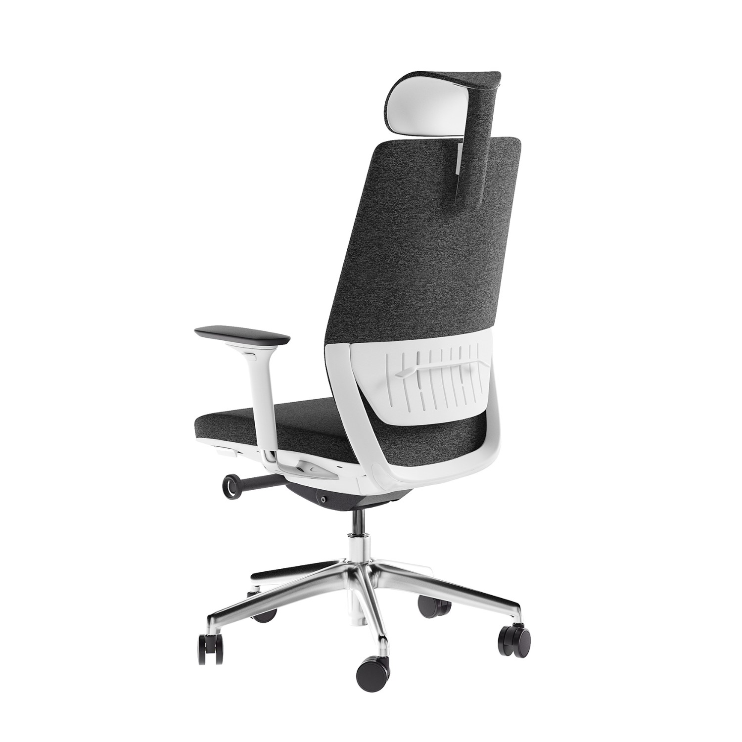 [0] => coda task chair, d261, oyster frame with aluminum base, grey fabric, headrest, oga