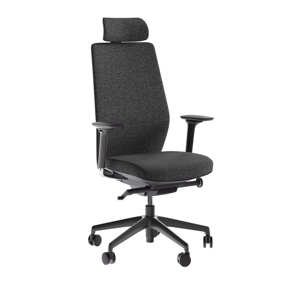 [0] => coda task chair, d261, black frame with plastic base, grey fabric, headrest, bgb