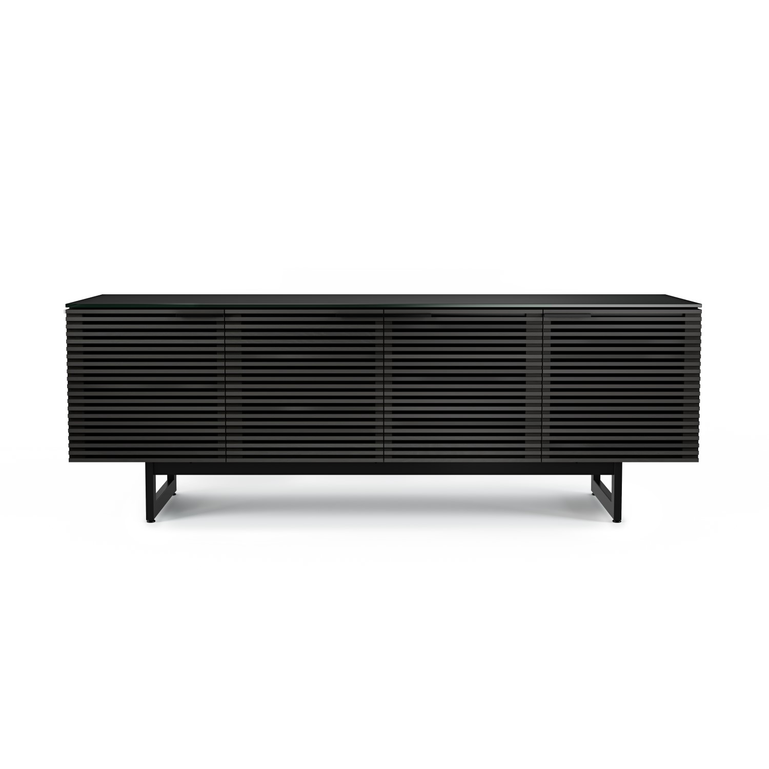 The Corridor TV Cabinet by BDI, available in charcoal-stained ash, is a contemporary media unit that forms part of the Corridor home collection. Combining high functionality with premium design, the cabinet features remote-friendly and acoustically-transparent louvered doors, durable satin-etched tempered glass, a full-width soundbar shelf, built-in cable management, hidden wheels, and ample storage for movies, video games, and other media. Versatile and adaptable, the Corridor Four Door TV Cabinet will maximize storage space while adding style to any room.