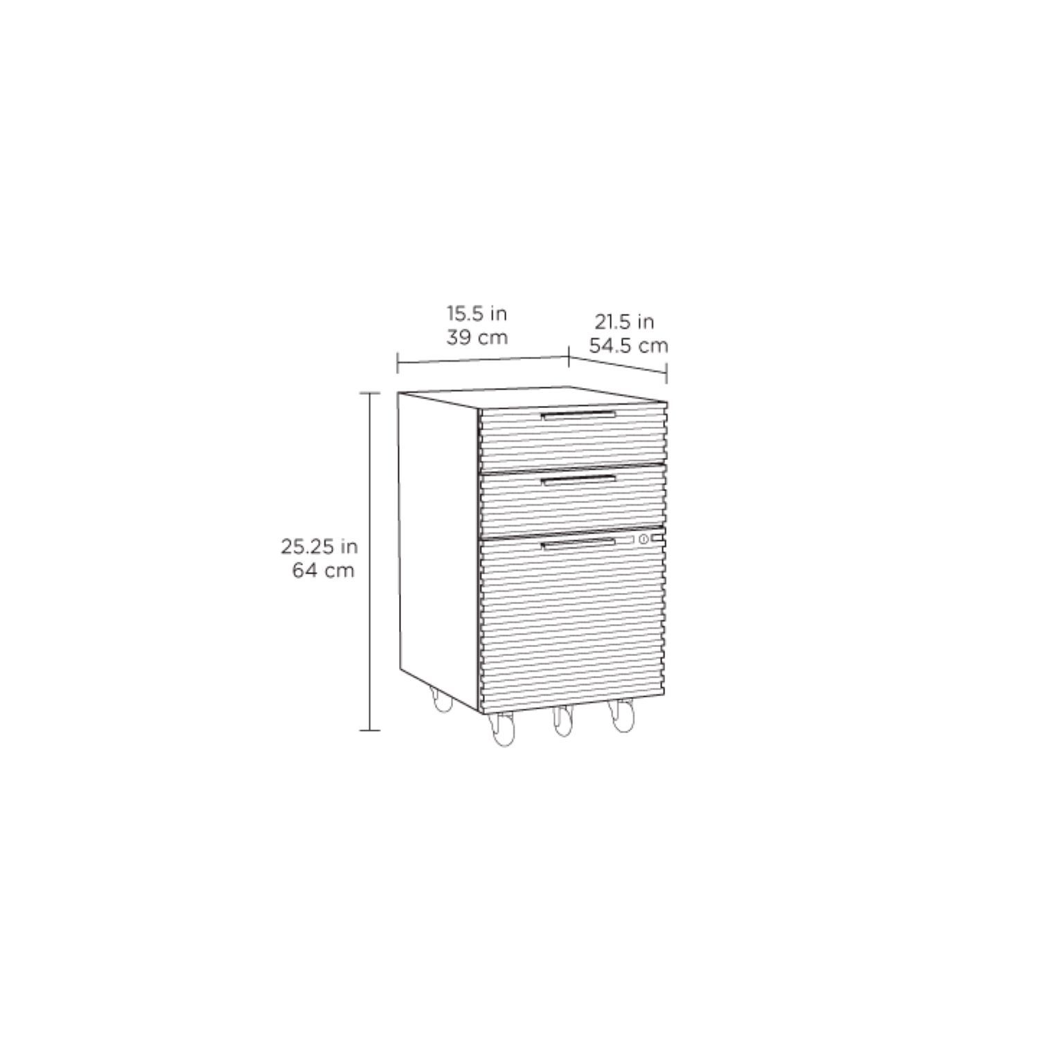 The Corridor Mobile File was designed with the modern professional in mind. Featuring natural walnut-stained wood, louvered drawer fronts, and locking wheels, Corridor's clean lines and refined styling is evident in every facet of its design. Two storage drawers and one file drawer provide extra storage space, while the lock keeps contents secure. The cabinet can also fit neatly underneath the Corridor Desk to keep supplies and files close at hand.