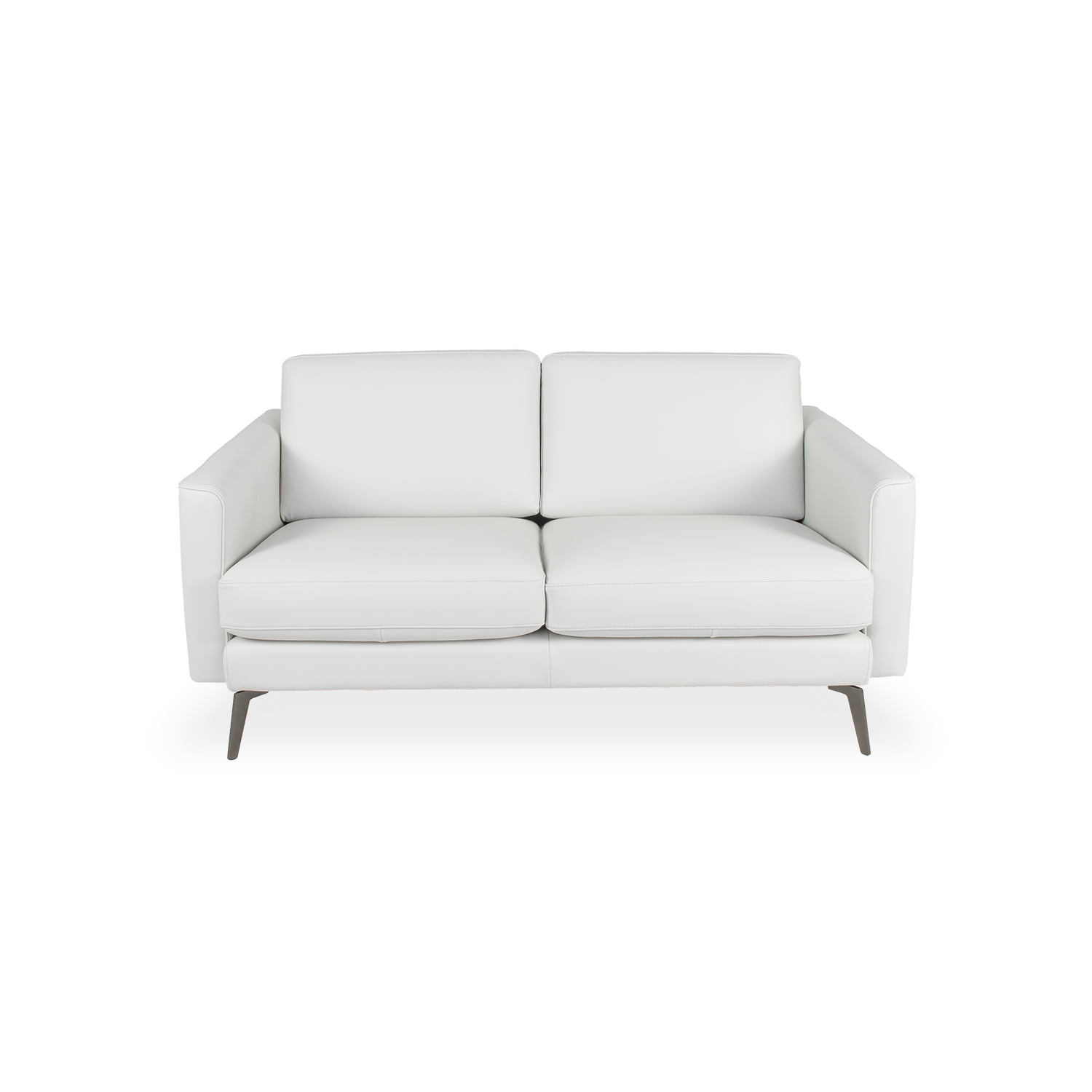 [0] => drake 2 cushion loveseat - 1597 white leather - biotite satin legs