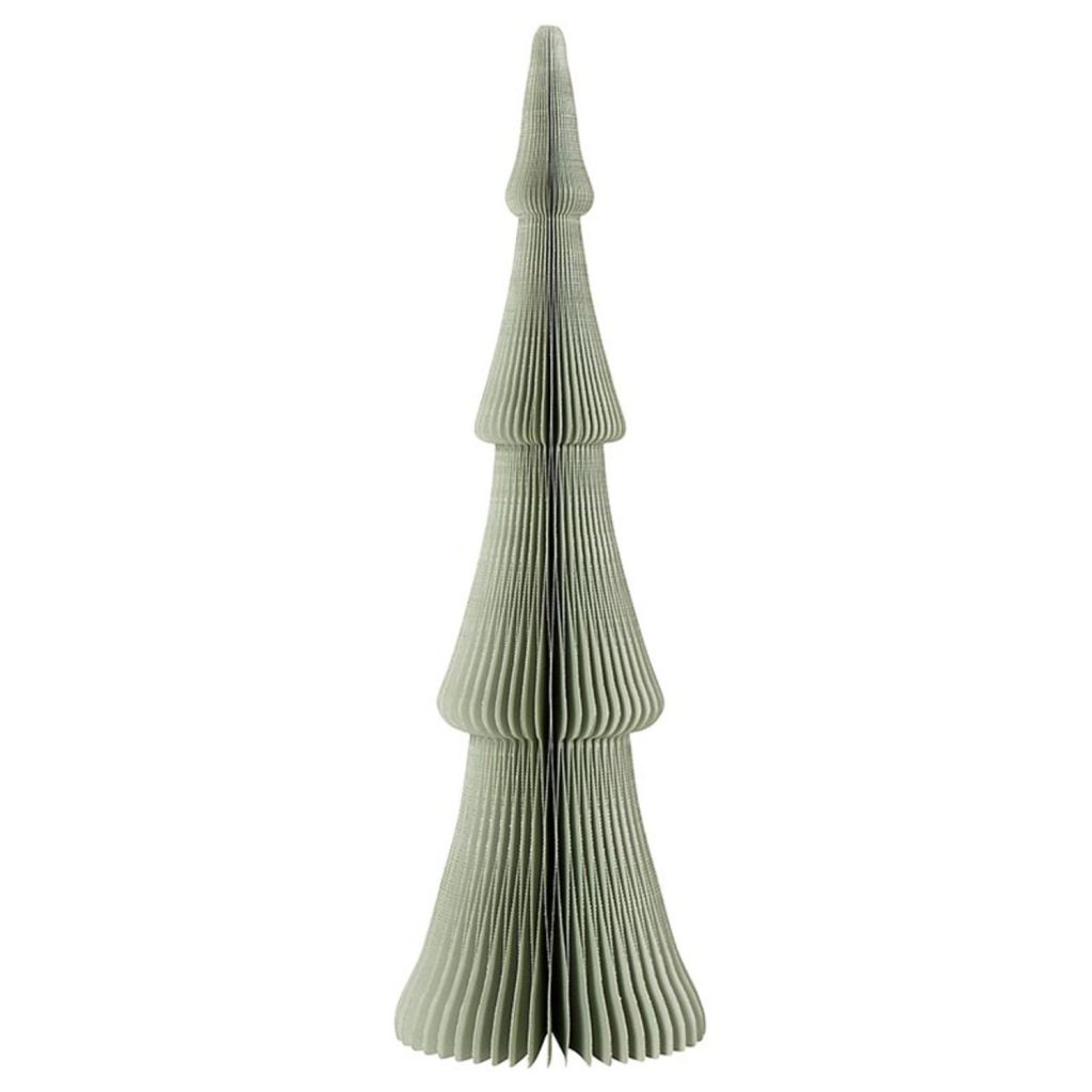 This 14-inch Fraser fir sage grey paper tree adds a simple, modern touch to holiday decorating. Its honeycomb design opens into a full, sculptural shape that works well next to a fireplace, or as a tabletop accent. Built-in magnets make it easy to assemble, fold, and store away. Mix and match this tree with others of its kind for an easy way to add color and texture to any holiday display.