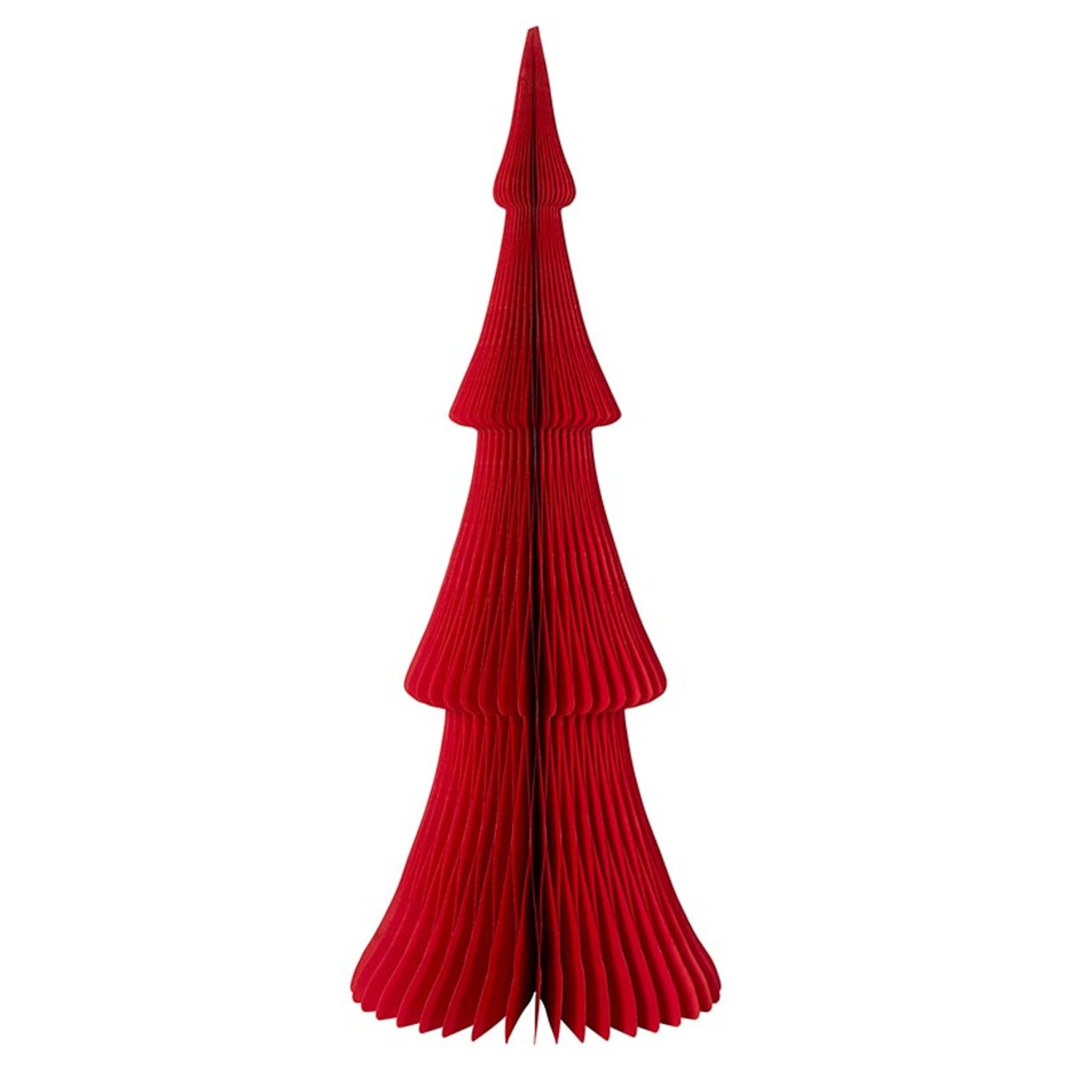 This 24-inch Fraser fir red paper tree adds a simple, modern touch to holiday decorating. Its honeycomb design opens into a full, sculptural shape that works well next to a fireplace, or as a tabletop accent. Built-in magnets make it easy to assemble, fold, and store away. Mix and match this tree with others of its kind for an easy way to add color and texture to any holiday display.