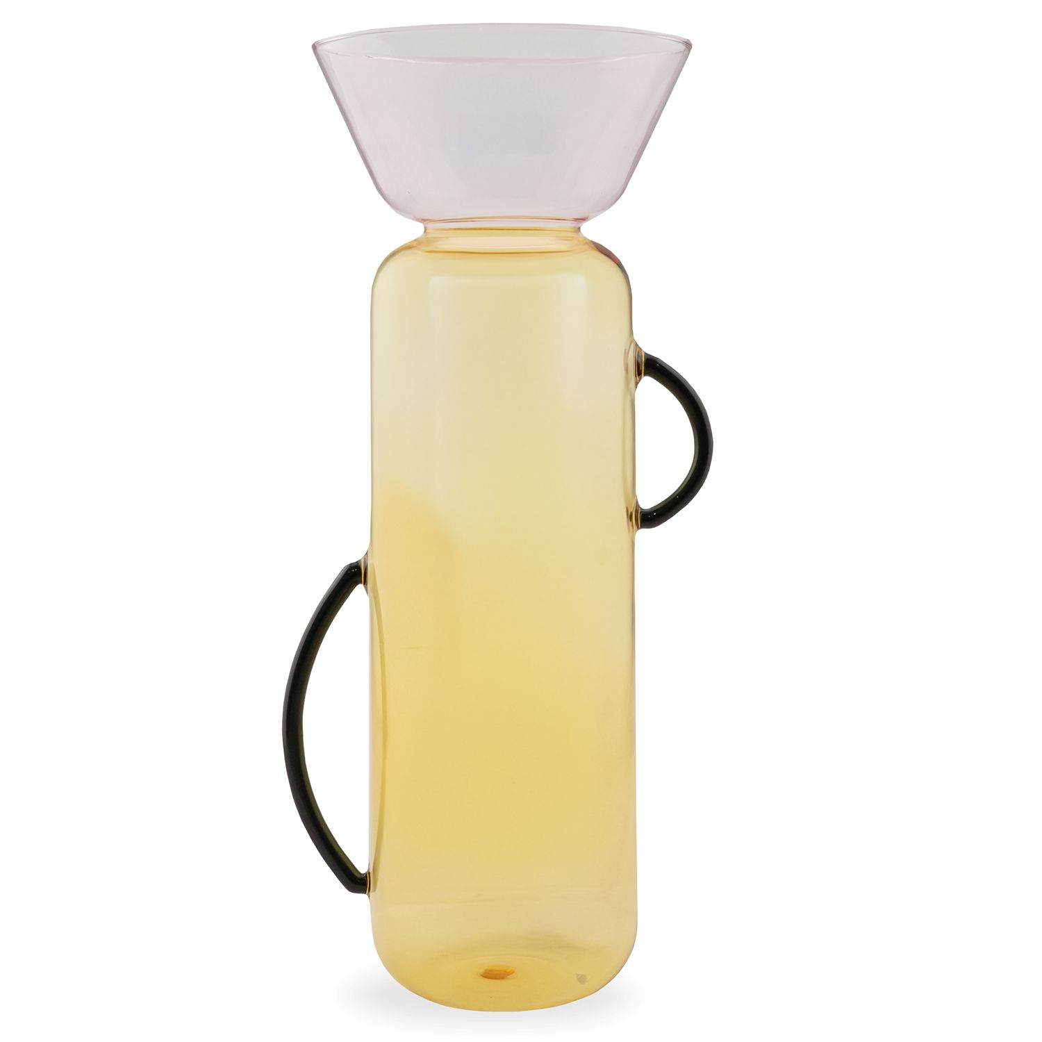 Bring expressive color and sculptural elegance into your home with the Gelee Vase by Ichendorf Milano. This tall vase features a softly rounded yellow glass body accented by a pink bowl-shaped top, and includes sleek black handles. Its elongated proportions and layered color palette make it well suited for modern, contemporary, and eclectic interiors.
