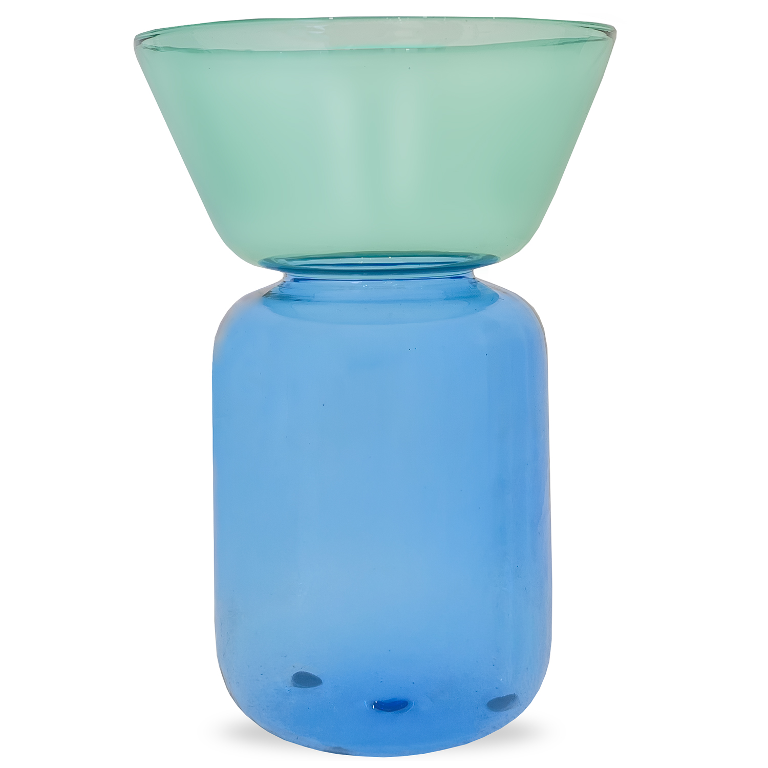 Add a touch of color to your space with the Gelee Vase from Ichendorf Milano. Crafted using flame-worked techniques, each vase is individually handmade. Shown here in light blue and petrol green, this vase's inverted proportions and smooth, rounded lines give it a modern yet timeless presence, especially ideal for minimalist, Scandinavian, or modern interiors.