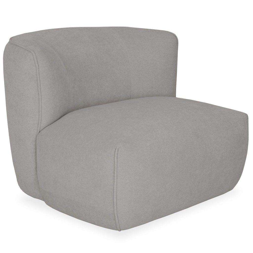 [0] => Made in Italy, the Giulia Swivel Chair brings chic style and cozy relaxation to any living space. Giulia is upholstered in pale grey Marilyn fabric with a light three-dimensional texture and subtle velvety feel. Its striking design features a curved backrest, a wide, plush seat, and piped accent stitching. A swivel base with a 180-degree return function adds a layer of flexibility to this chair, whether you use it for reading, conversation, or simply lounging.
