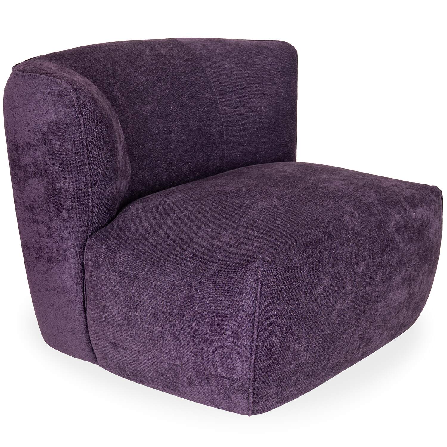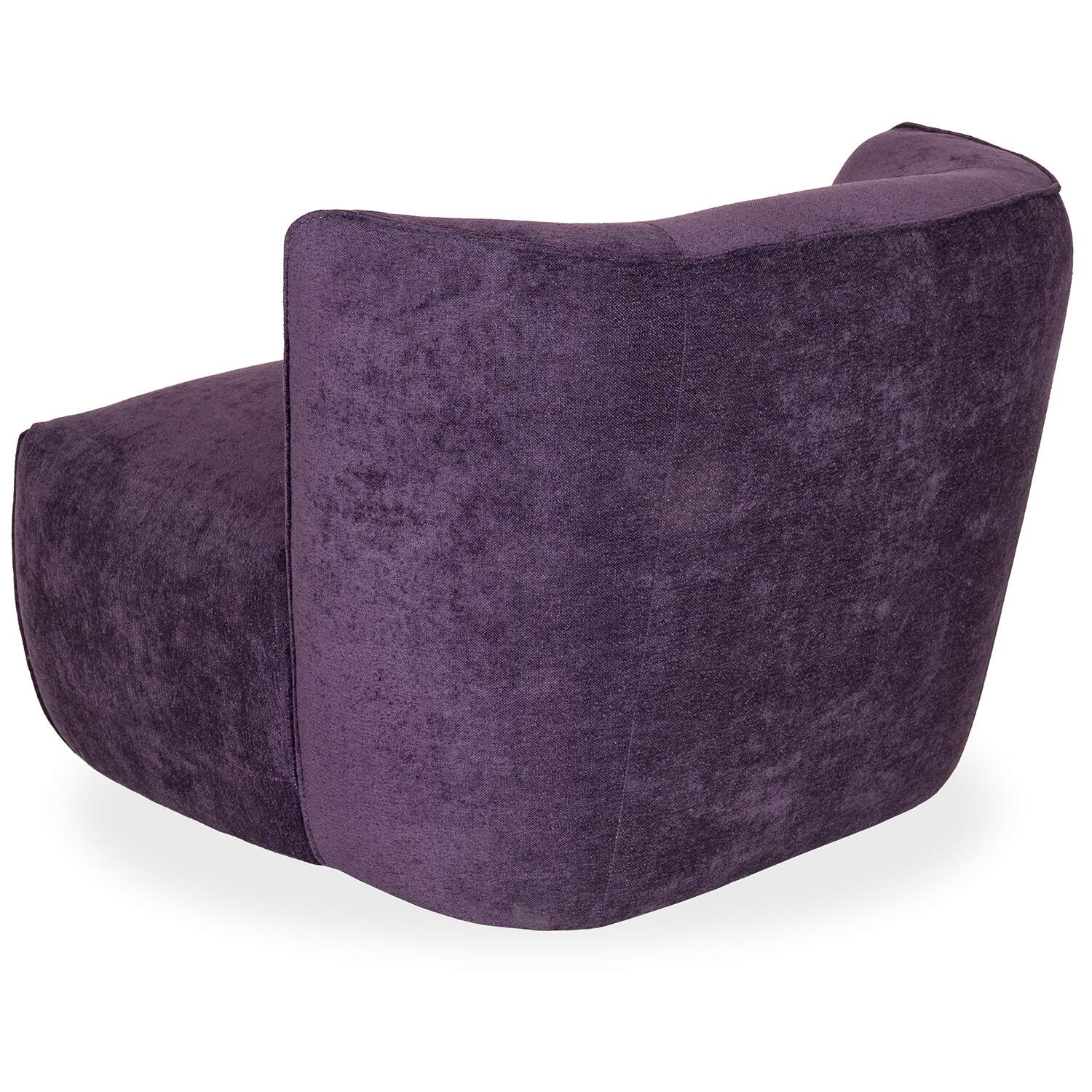 [0] => Made in Italy, the Giulia Swivel Chair brings chic style and cozy relaxation to any living space. Giulia is upholstered in aubergine purple Marilyn fabric with a light three-dimensional texture and subtle velvety feel. Its striking design features a curved backrest, a wide, plush seat, and piped accent stitching. A swivel base with a 180-degree return function adds a layer of flexibility to this chair, whether you use it for reading, conversation, or simply lounging.
