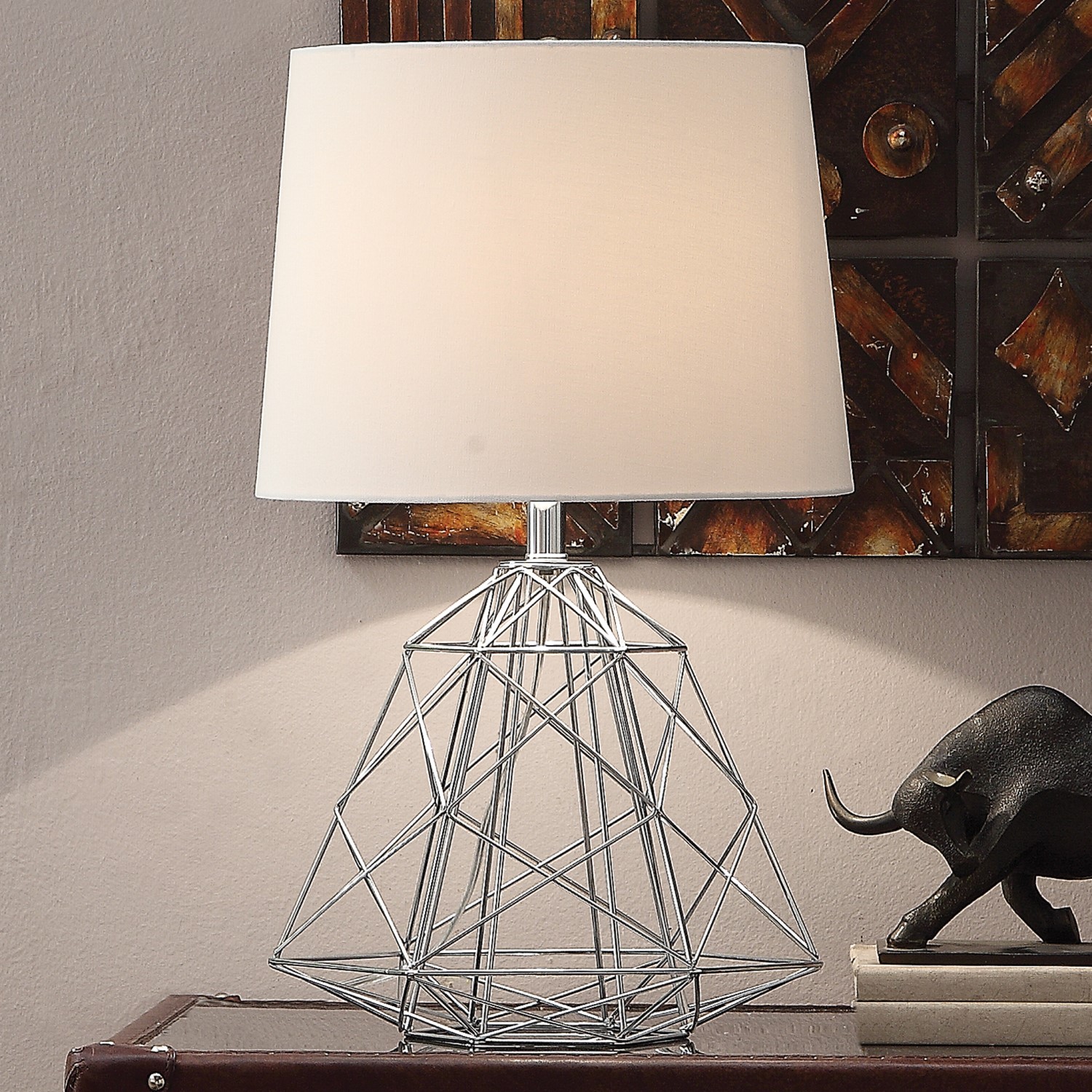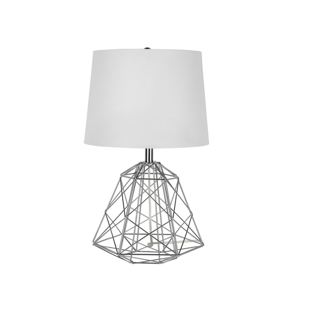 [0] => The Grid Table Lamp features an abstract geometric chrome base and a white shade for a look that is minimalist and contemporary. The scaffold-like structure makes this lamp the perfect accent piece for any modern home. The Grid Table Lamp has an on/off socket switch and requires one 60W E26/E27 lightbulb, not included with purchase.