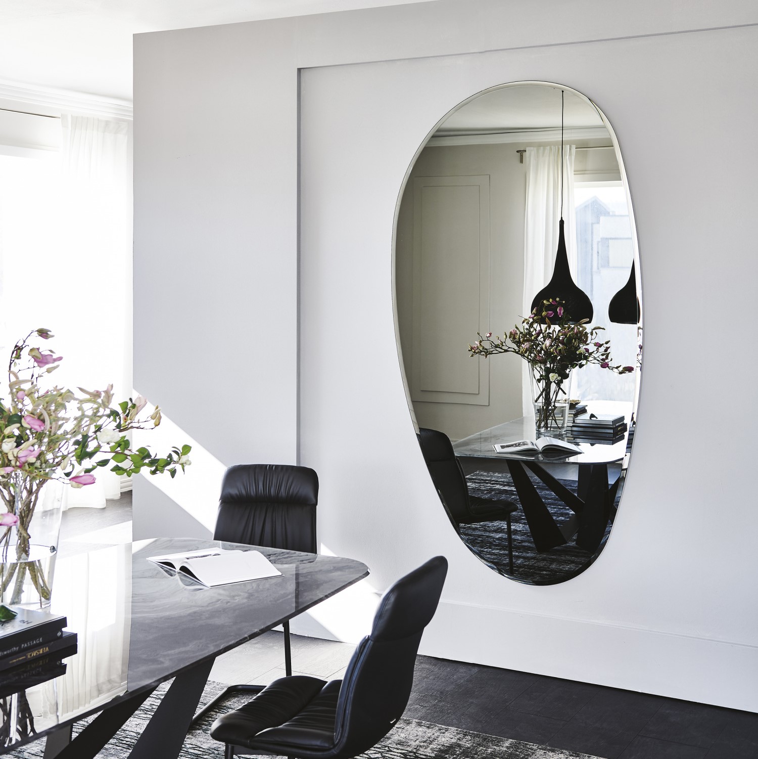 [0] => The Hawaii Magnum Mirror, designed by Cattelan Italia and available with clear mirrored glass, brings crisp design to your home. Stunning in any hallway, bedroom, or living space, this mirror has an oblong shape that at once feels organic and contemporary. The subtle border creates an attractive frame for the crystal clear reflection of its surroundings.