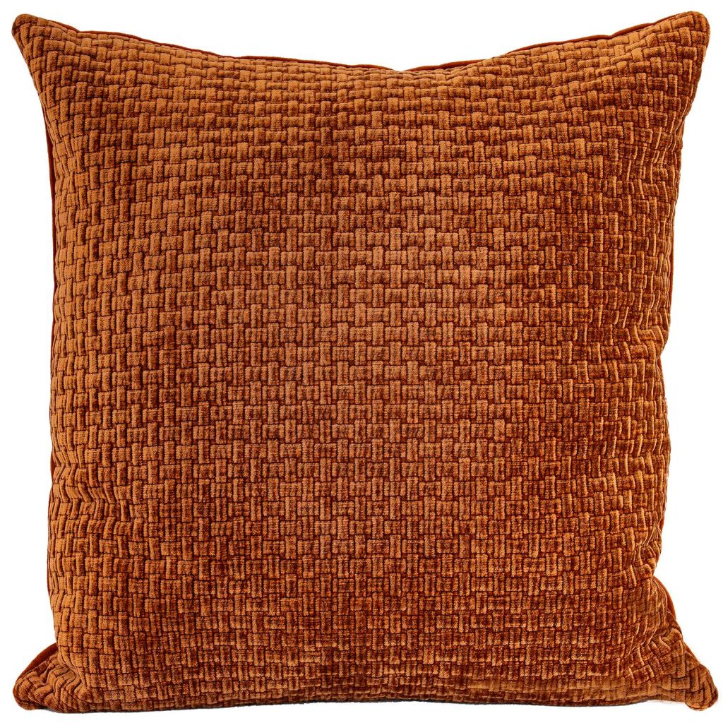 The Jolie Pillow features an earthy shade of cognac brown that will add a pop of color to your favorite sofa or accent chair. Jolie is outfitted in a soft, velvety cover with a basketweave texture on the front and a smooth surface on the back. A polyester filling gives this pillow a satisfying plumpness, while a discreet zipper allows the cover to be removed for spot-cleaning if needed.