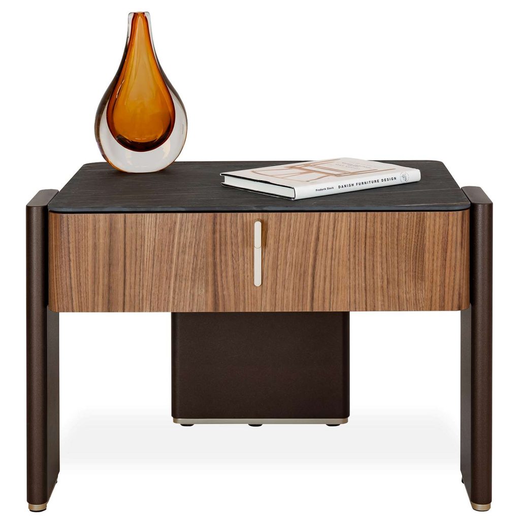 [0] => julian night stand with 1 drawer in canaletto walnut, legs bronze gf18, top in marmi matt portoro km07