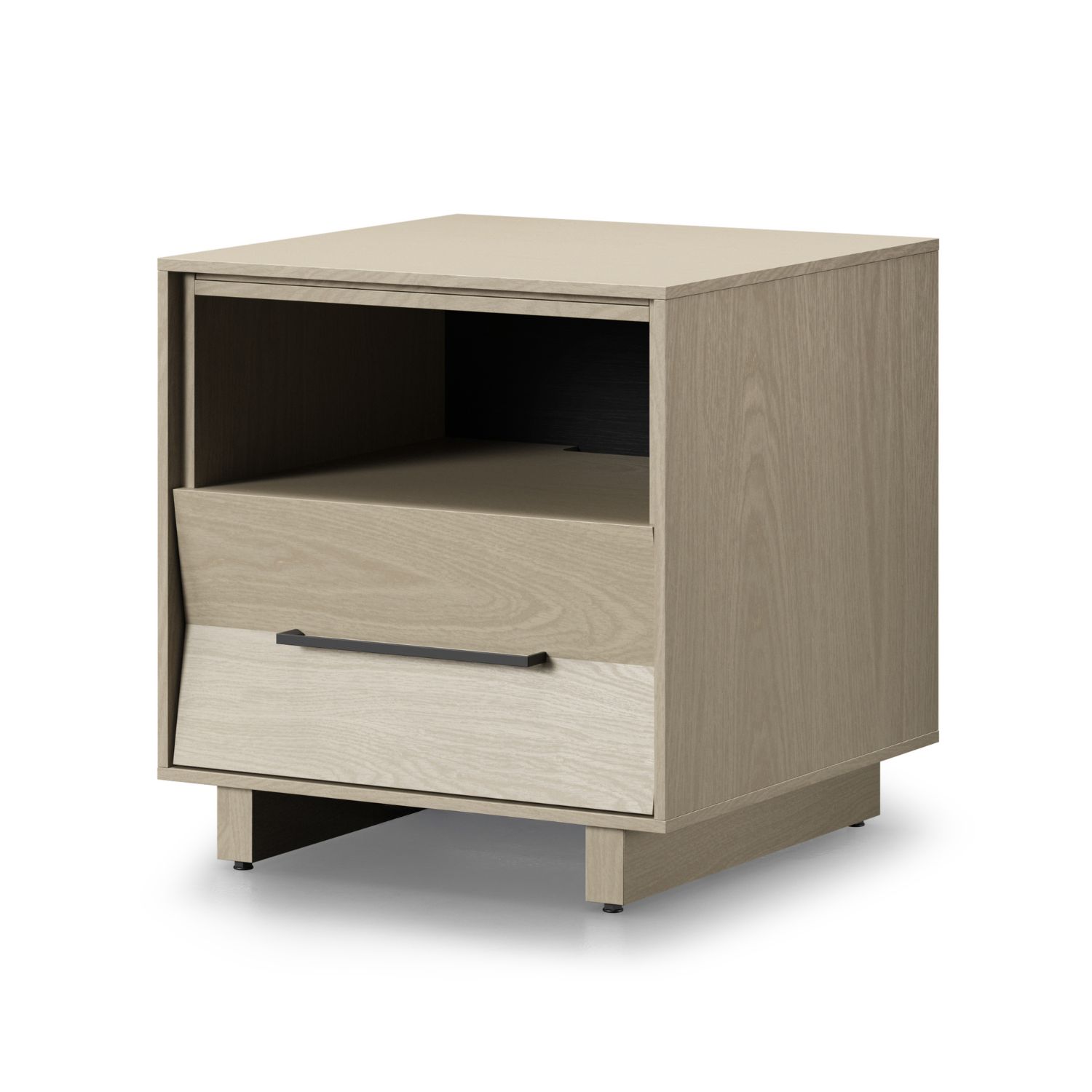 Designed by Matthew Weatherly, the Kava 20" Side Table features a washed oak veneer, a pleated drawer front, and the ability to function as either a nightstand or side table. Kava's state-of-the-art tabletop can slide forward, keeping items within easy reach by a bedside, or allowing access to an integrated power station on the back. Plug your lamp, clock, or chargers into the power strip, and keep cables organized with built-in wire wraps. An open compartment offers the perfect spot to put books and devices, while a soft-close drawer with a removable accessory tray stores your belongings in style. Ideal for small spaces, the Kava 20" Side Table pairs seamlessly with other Kava items for a beautifully streamlined home.