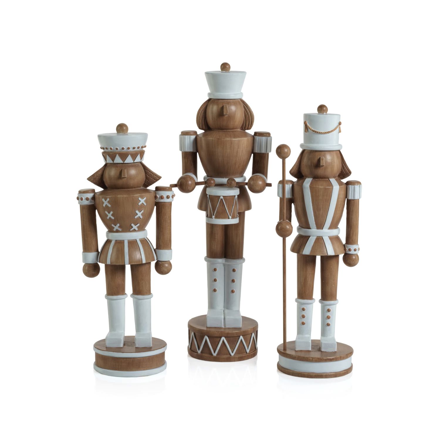 Drum up excitement this season with the Large Nutcracker Figure. Featuring a realistic wood look and white accents, this figure stands at attention with his drum at the ready. Mix and match with the companion nutcrackers to complete your holiday aesthetic.