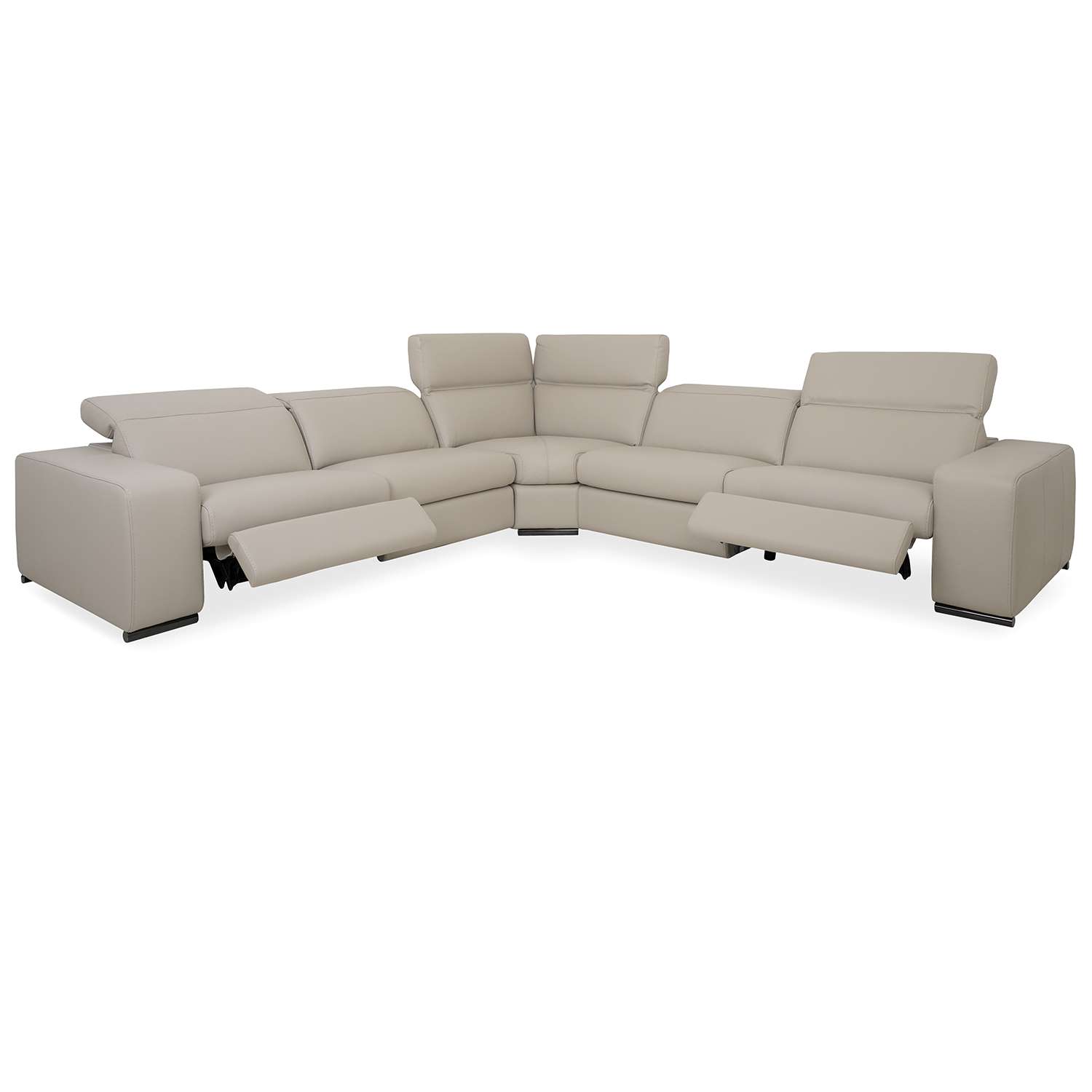 The Lianne Sectional, available in beige Giotto leather, features power motion technology and crisp, clean style, with five wide seats that provide ample room to stretch out and lounge. Three of the seats are equipped with dual power motion, which adjusts the headrest, leg rest, and back angle to your ideal level of comfort at the touch of a button. The power panels also include USB-C charging ports for added convenience. Enhance your living room and make Lianne your favorite place to sit, socialize, or relax.