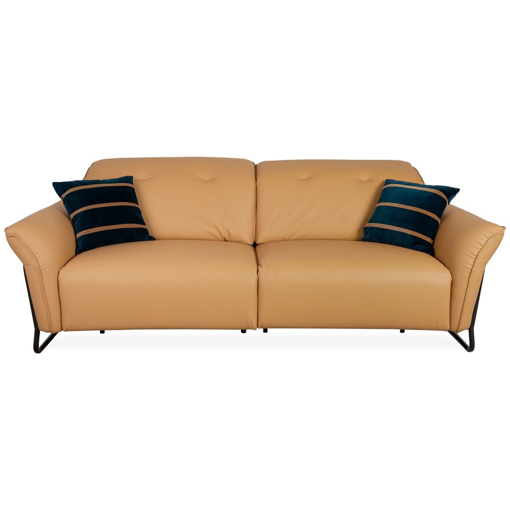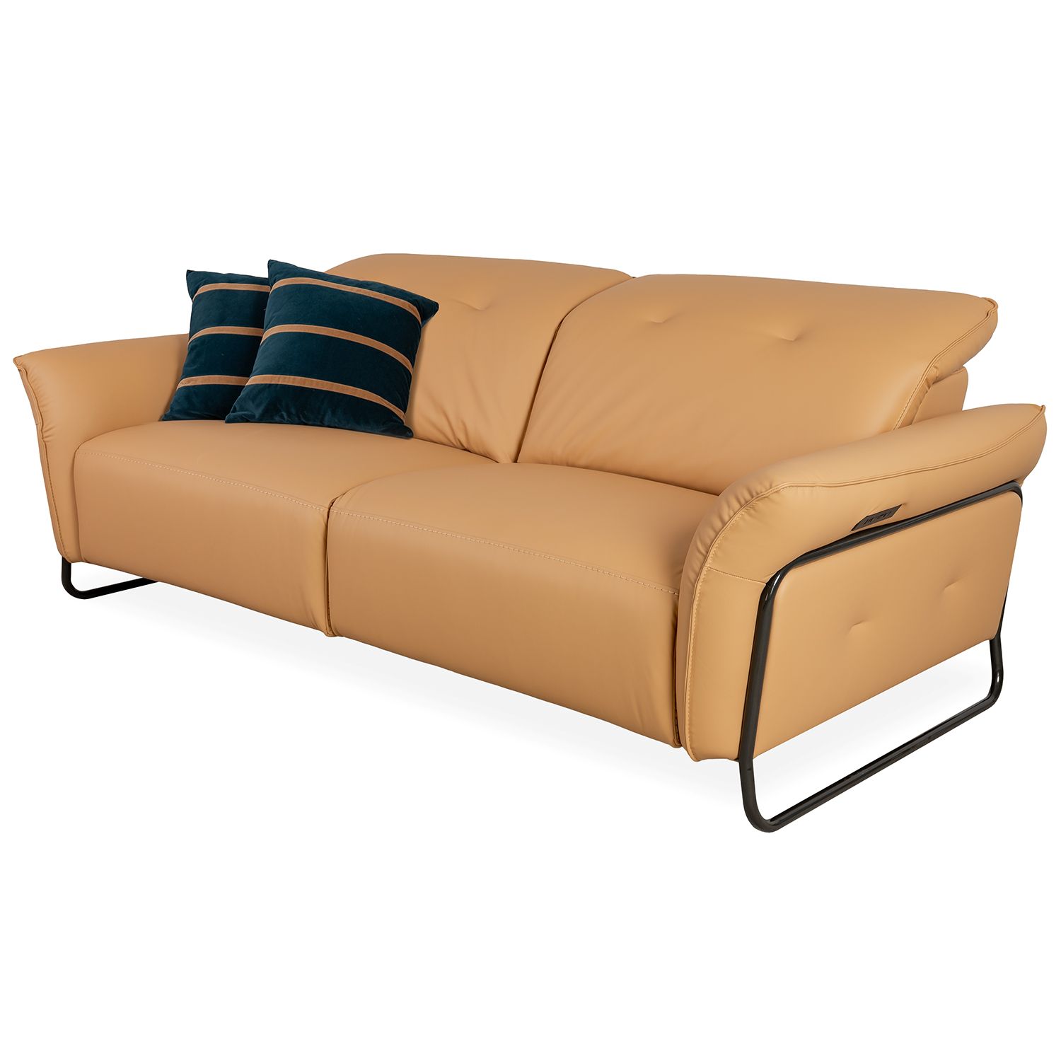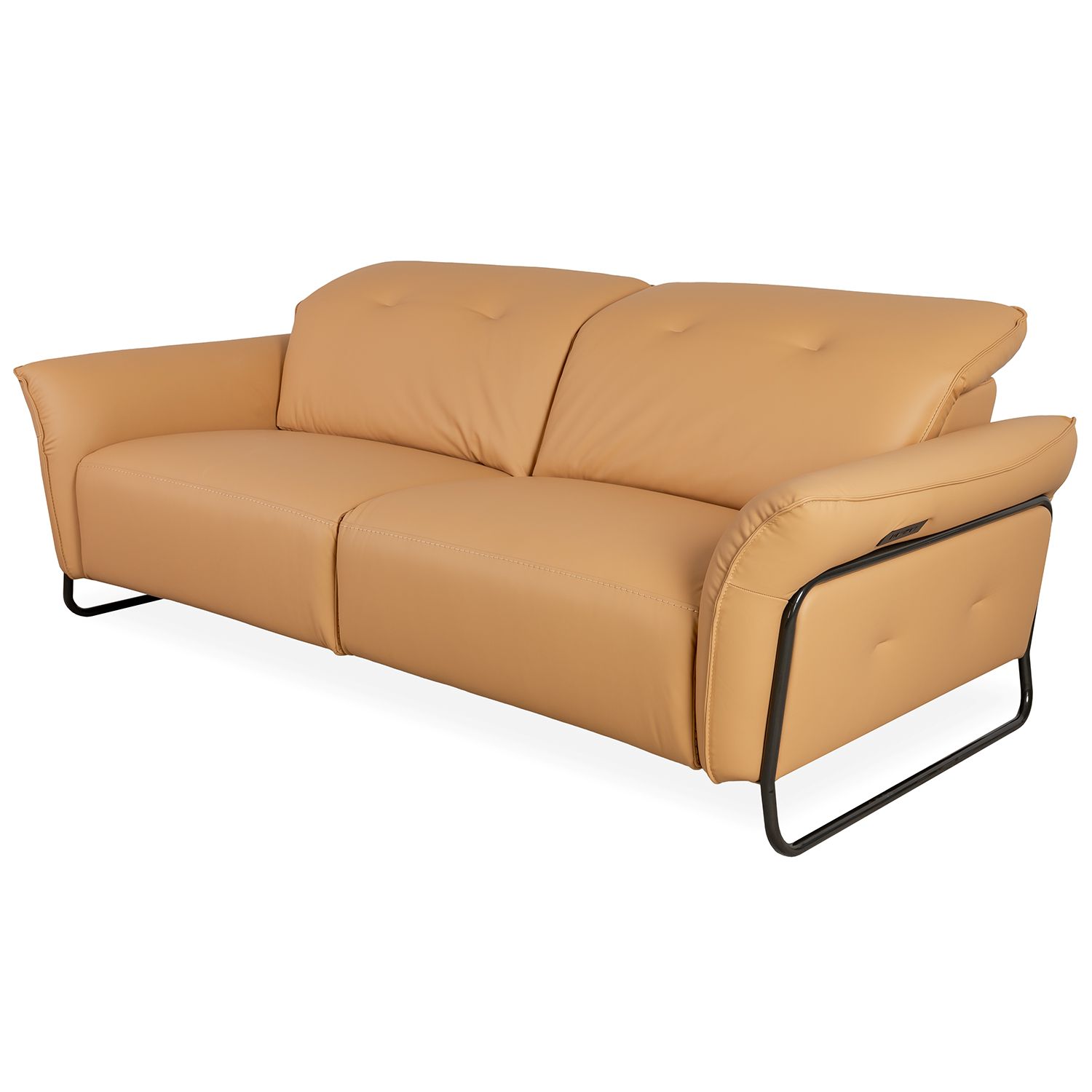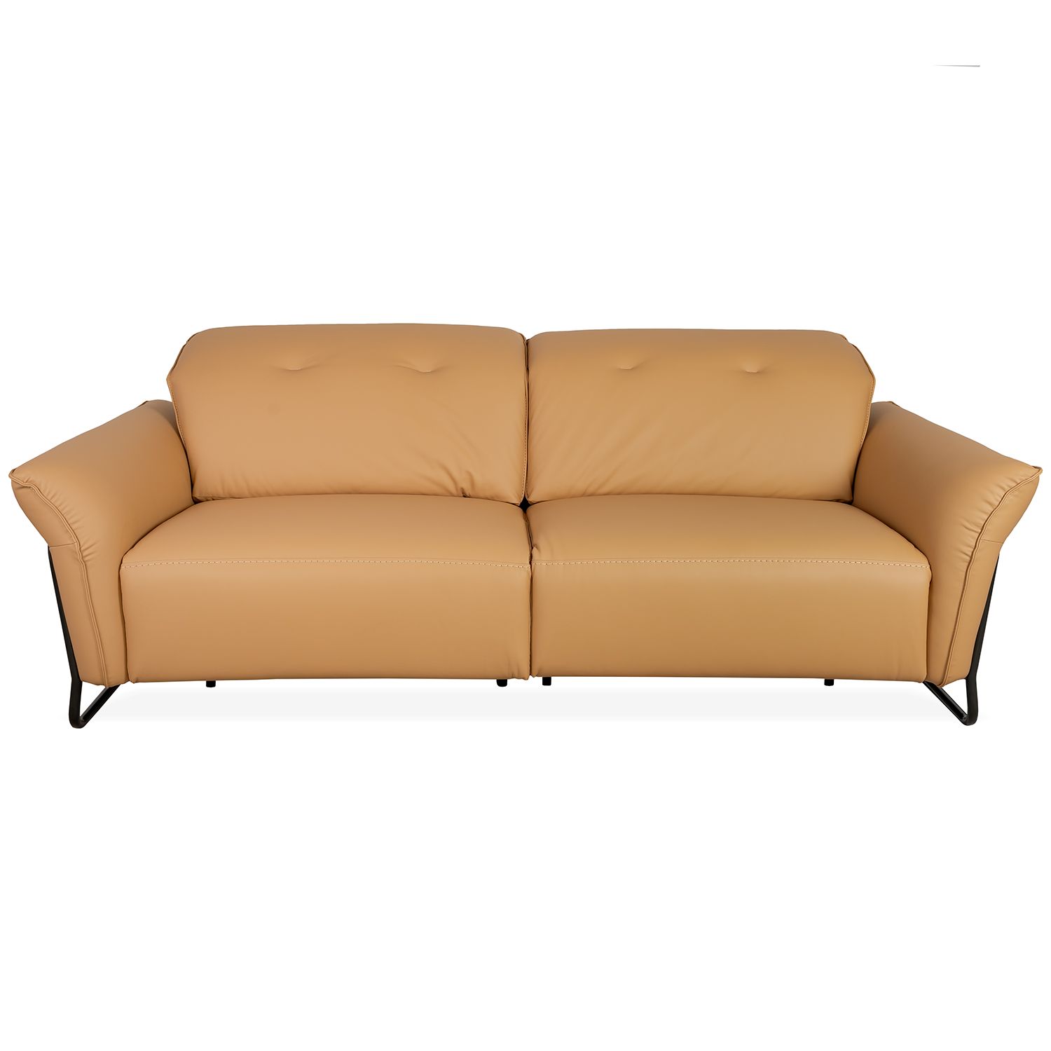 Made in Italy, the Lorenzo Power Sofa fuses retro flair with modern technology. Lorenzo is upholstered in warm yellow leather that will add a burst of cheer to any space, and supported by rounded, rectangular black legs. Wide seats and flared armrests invite you to relax, while tufted stitches on the backrests and sides add a charming accent. Lorenzo's power motion controls allow you to individually adjust each footrest and headrest, with USB-A/C ports letting you charge devices with ease.