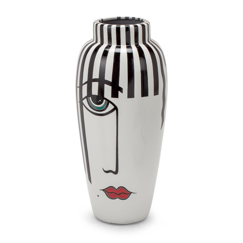 [description] => Luciana 9x13.5 Hand Painted Vase White, Black And Red Face