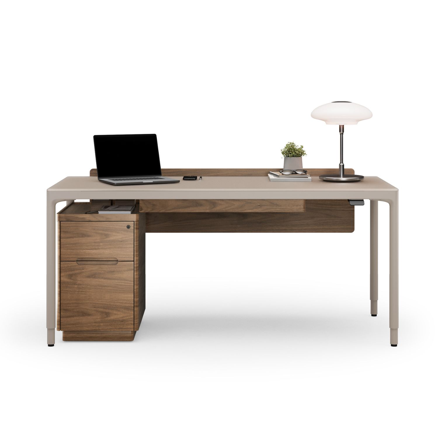 The Luma Lift Desk elevates your workday with refined, minimalist style and ergonomic performance. Luma features a dune beige top made of fingerprint-resistant satin-etched glass, supported by a matching base in powder-coated steel. The four-leg power lift system is controlled by a programmable paddle for smooth movement at the touch of a finger. Plug devices into the integrated power strip and keep cables organized with the wire management wraps. With its rounded corners and neutral color scheme, Luma radiates simplicity and warmth. Pair with the Luma Adjustable Back Panel and Luma Keyboard Drawer, sold separately, to upgrade your setup.
