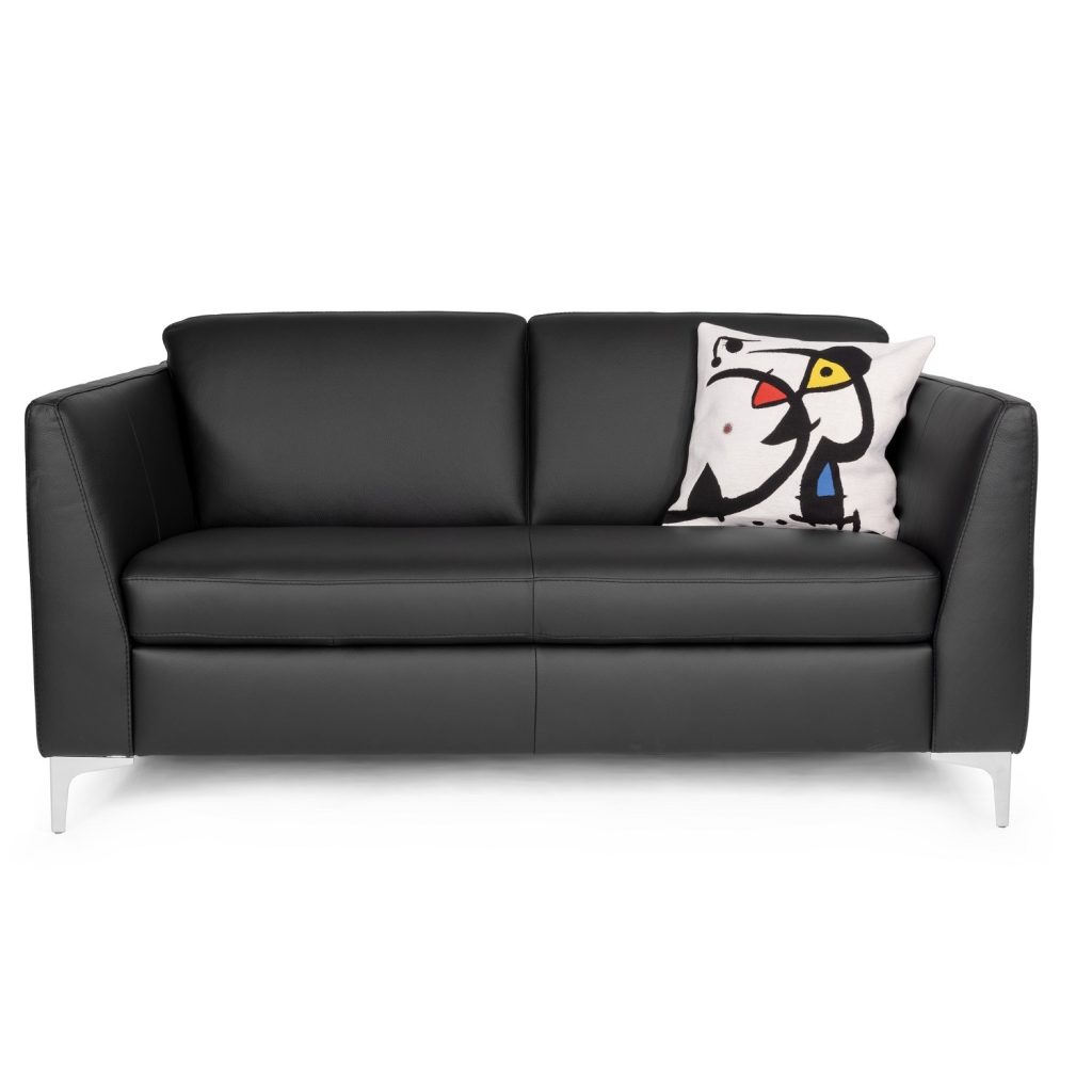 The March loveseat, made in Italy, features clean, elegant lines and black leather. The subtle angles of the arms complement the linearity of the back and seat cushions, resulting in a versatile look that fits well in just about any space. March's seat and back cushions are firm and support an upright sitting position.