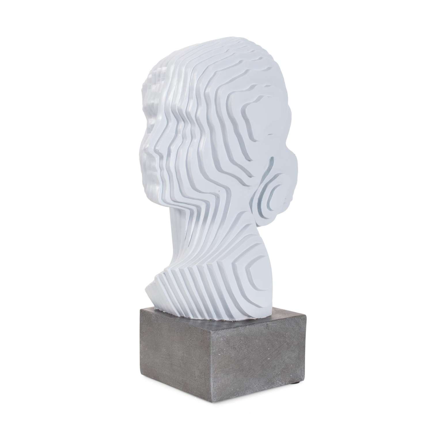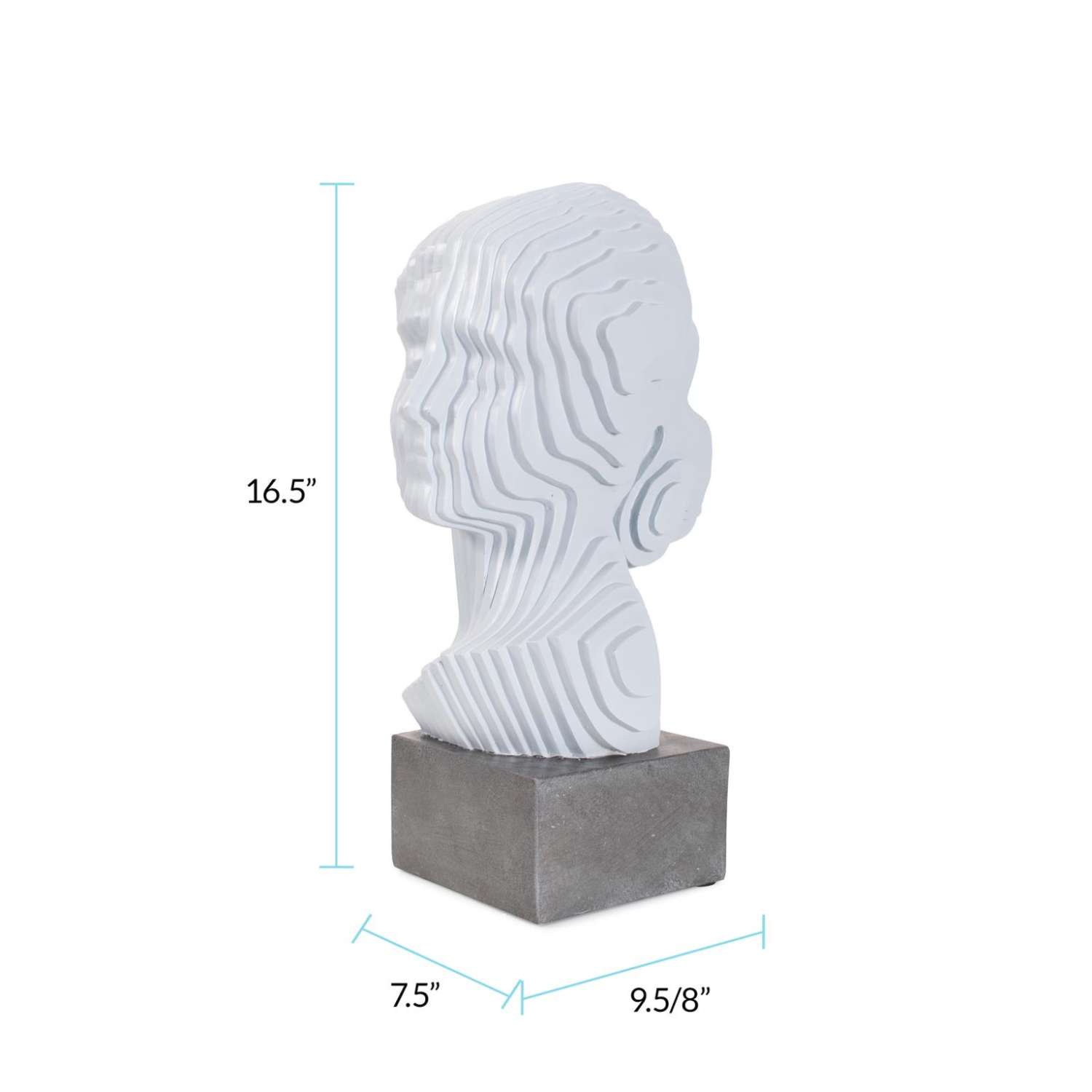 Modern Aspect of Man is a contemporary sculpture composed of layered, vertical segments that form the head and neck of a human figure. This sculpture is made of polyresin with a light blue-grey finish, and stands on a stone base that allows for easy display on any flat surface. A classic design with an avant-garde twist, Modern Aspect of Man makes an ideal home accent for enthusiasts of modern art.