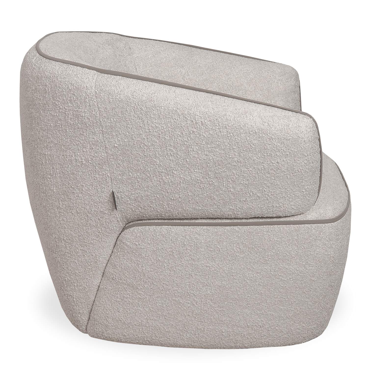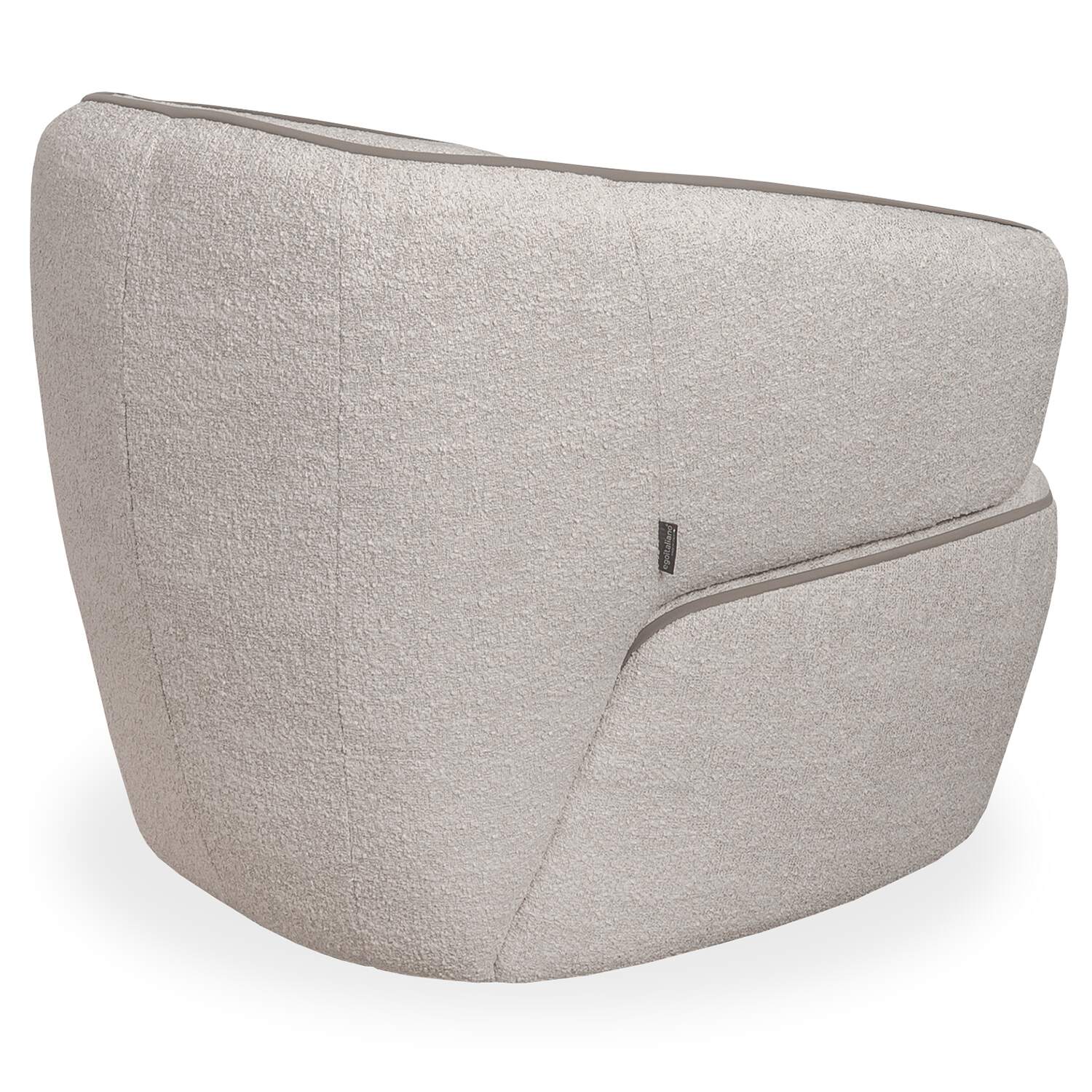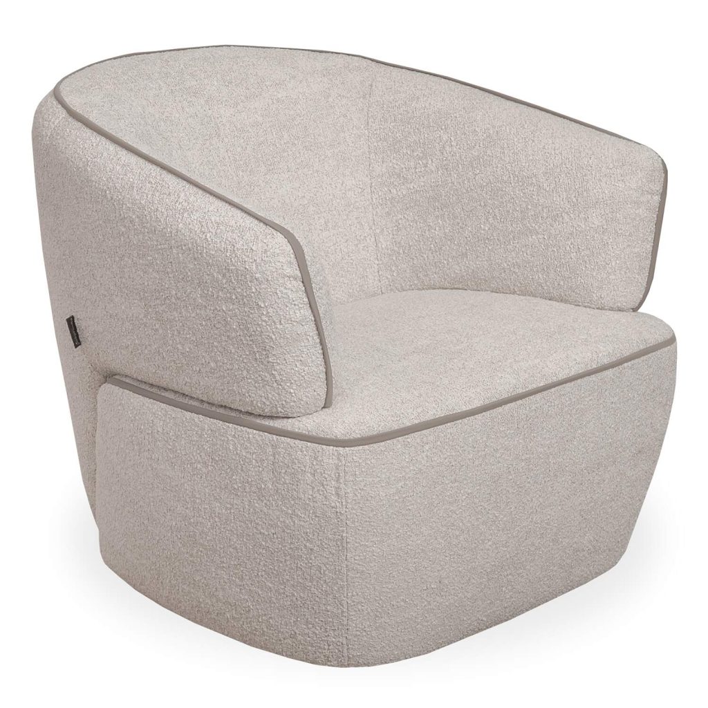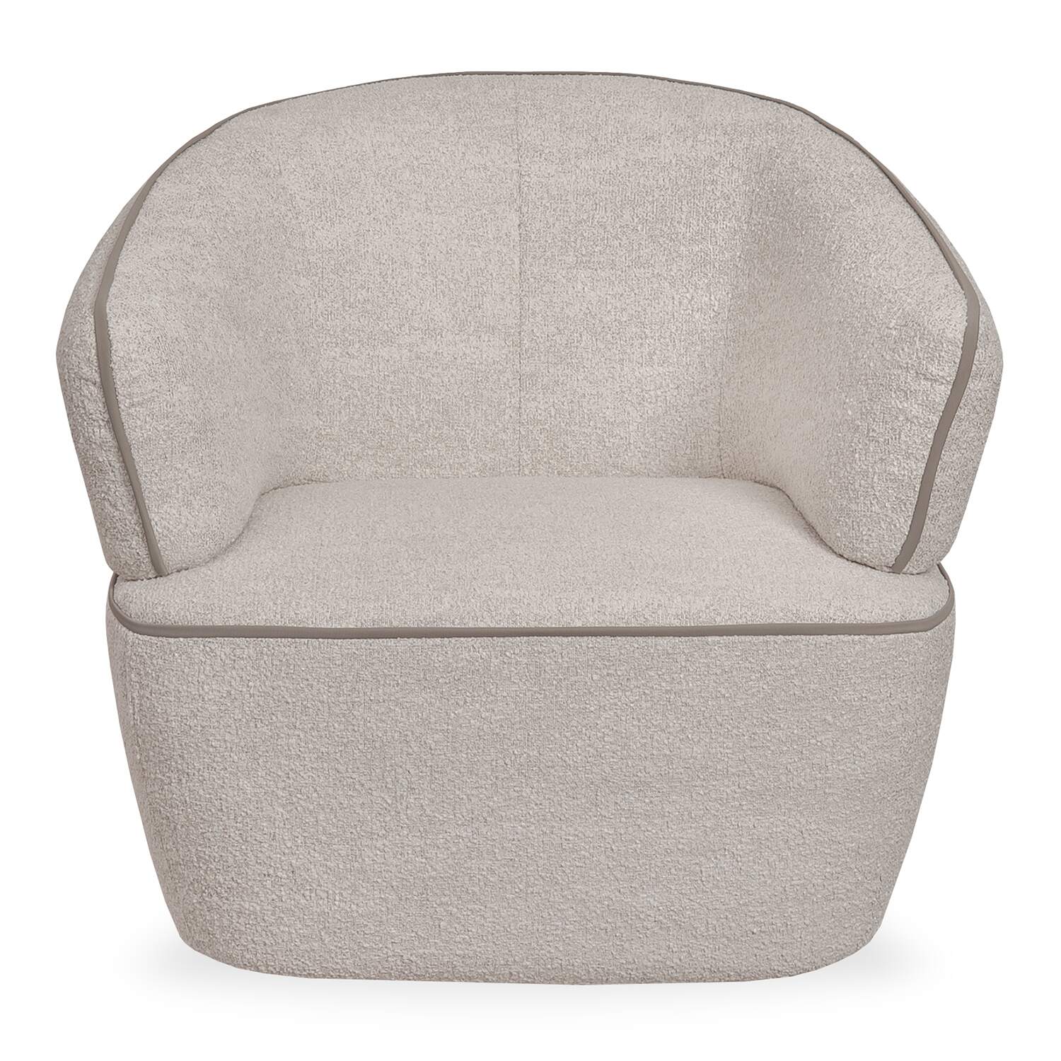 Make a style statement with the Momo Swivel Chair, which sports a fun shape and compact footprint ideal for a modern or eclectic living space. Made in Italy, Momo features curved lines, winged armrests, and soft cushioning, all of which create a cozy, enveloping feel. The fabric upholstery has a boucle-like texture and a variegated appearance in shades of cream and beige, accented with contrast piping in taupe for a tailored finish. A 360-degree swivel function gives the Momo Chair added flexibility and function.